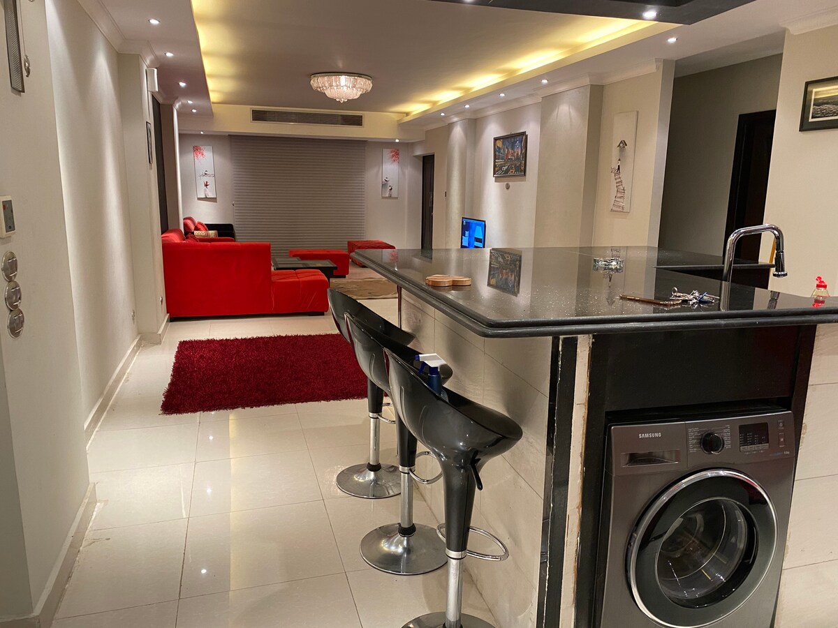 Pour votre protection, nous désinfectons en permanence l'appartement et les escaliers avec de l'alcool à 70 %. C'est un appartement confortable et ensoleillé. Situé au 6e étage. Il y a un ascenseur, un portier, une grande réception, une salle à manger, 2 chambres, 1 cuisine entièrement équipée, 1 salle de bain. Il se trouve dans un quartier d'élite, à 10 min min. des étoiles de la ville, à 30 min. de l'aéroport du Caire. Plusieurs cafés, supermarchés et magasins de vêtements sont à quelques minutes de l'appartement. La station de métro Girls College est à 15 minutes à pied.