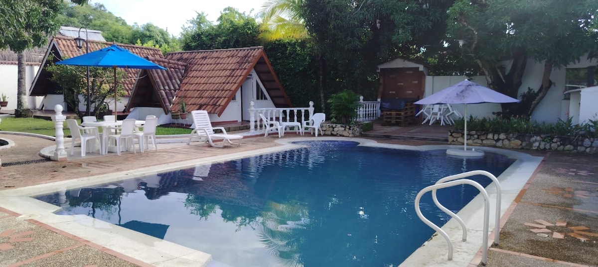 Cabane PRIVÉE à Melgar en dehors du chaos du village. Il dispose de : Piscine privée à usage exclusif pour le chalet 4 chambres 4 salles de bains Rôtissoire BBQ au charbon Cuisine entièrement équipée (Réfrigérateur, congélateur, ustensiles de cuisine, casseroles, mixeur, sanduchera) Capacité maximale de 14 personnes y compris les enfants L'endroit est entièrement à l'extérieur et beaucoup d'espace vert parfait pour profiter en famille avec des enfants, ou un voyage de repos. Les animaux de compagnie sont les bienvenus !