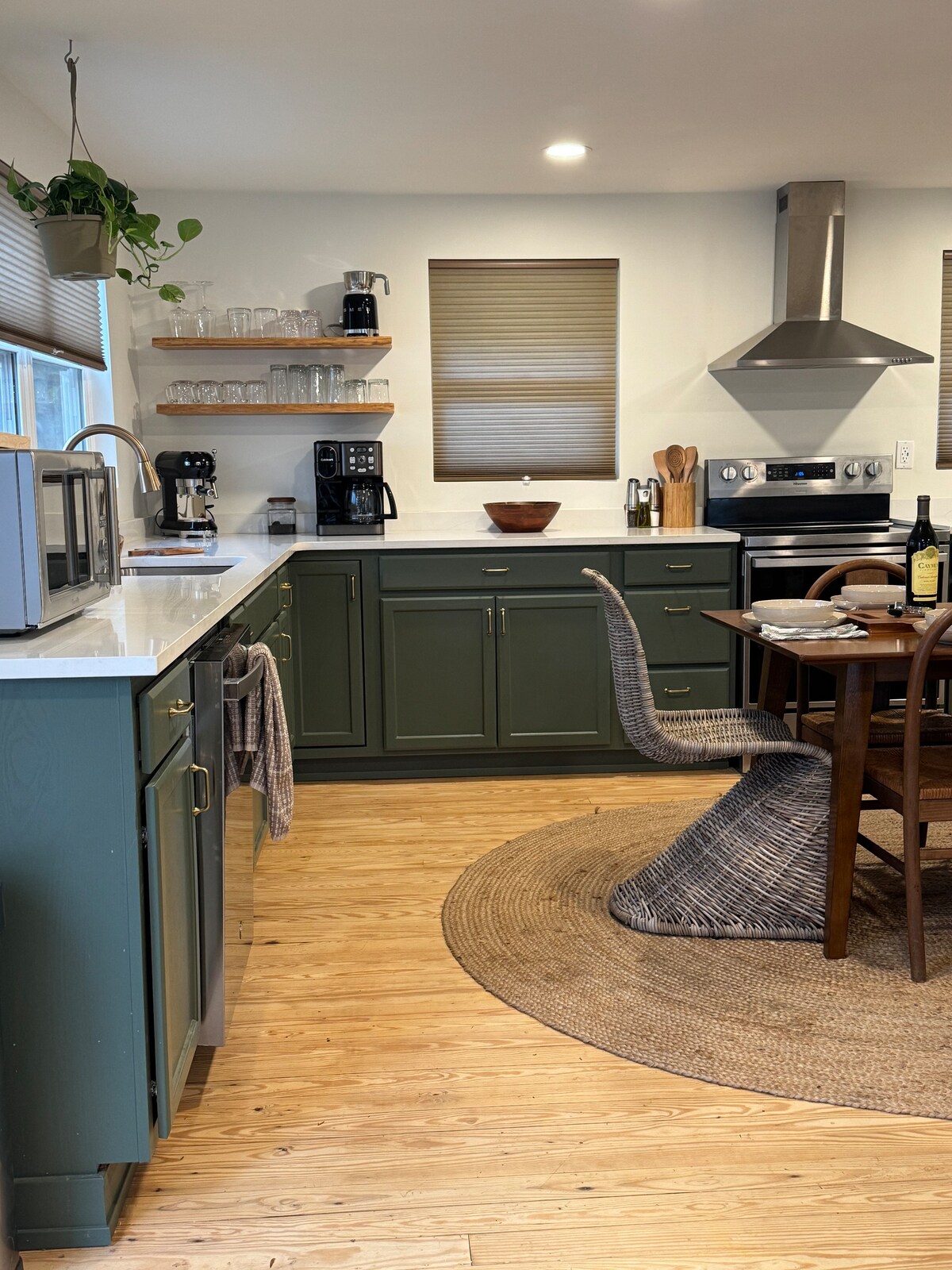 3 chambres, 3,5 salles de bain sur le lac Nolin. 8 miles de l'entrée principale de Mammoth Cave. Maison majestueuse au bord de l'eau construite sur mesure avec vue incroyable sur le lac, le coucher du soleil et le brasero. Peut accueillir 11 personnes confortablement. Veuillez noter que nous sommes sur une falaise et que nous n'avons pas d'accès direct au lac depuis la propriété. Suite parentale avec lit Queen Size au niveau principal. Le niveau inférieur dispose de lits jumeaux sur lits jumeaux avec un lit gigogne et un canapé-lit. Le niveau supérieur dispose de deux chambres avec des lits complets. Bains complets sur les trois niveaux. Lave-linge et sèche-linge grand format