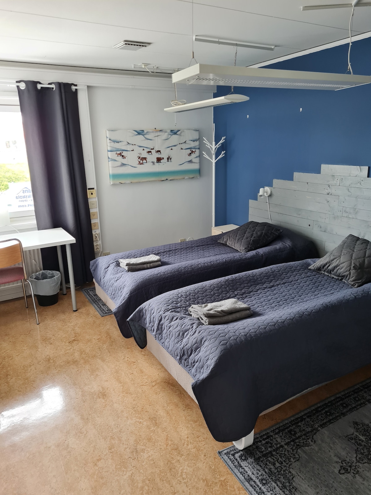 Logement avec norme d'auberge de jeunesse. Au total 7 chambres qui sont louées séparément, 5 chambres avec deux lits chacune et deux chambres qui peuvent être équipées d'un lit d'appoint. Wc/douche et kichen dans les espaces partagés. Dans le bâtiment principal, il y a une réception, un magasin et un restaurant servant de la nourriture locale et dans le pub, vous pouvez prendre une bière ou un verre de vin. Le wifi fonctionne mieux dans le restaurant.