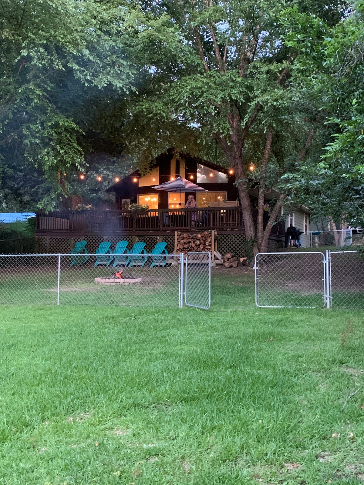 Cabane au bord de l'eau relaxante dans un emplacement privilégié sur le lac Palestine. Venez profiter des pins de l'est du Texas, détendez-vous autour du foyer, dînez sur la terrasse ouverte ou le porche grillagé et asseyez-vous sur le quai au coucher du soleil. Belle maison rénovée avec de grands espaces de restauration et de divertissement. Cuisine entièrement équipée avec appareils électroménagers en acier inoxydable et magnifiques comptoirs en granit. Assiettes, ustensiles de cuisine, ustensiles tous disponibles. (Lit 1) : lit King Size (Lit 2) : lit Queen Size (Lit 3) : 2 ensembles de lits superposés ; lit complet en bas et lit jumeau (MAX 100 lb) en haut.