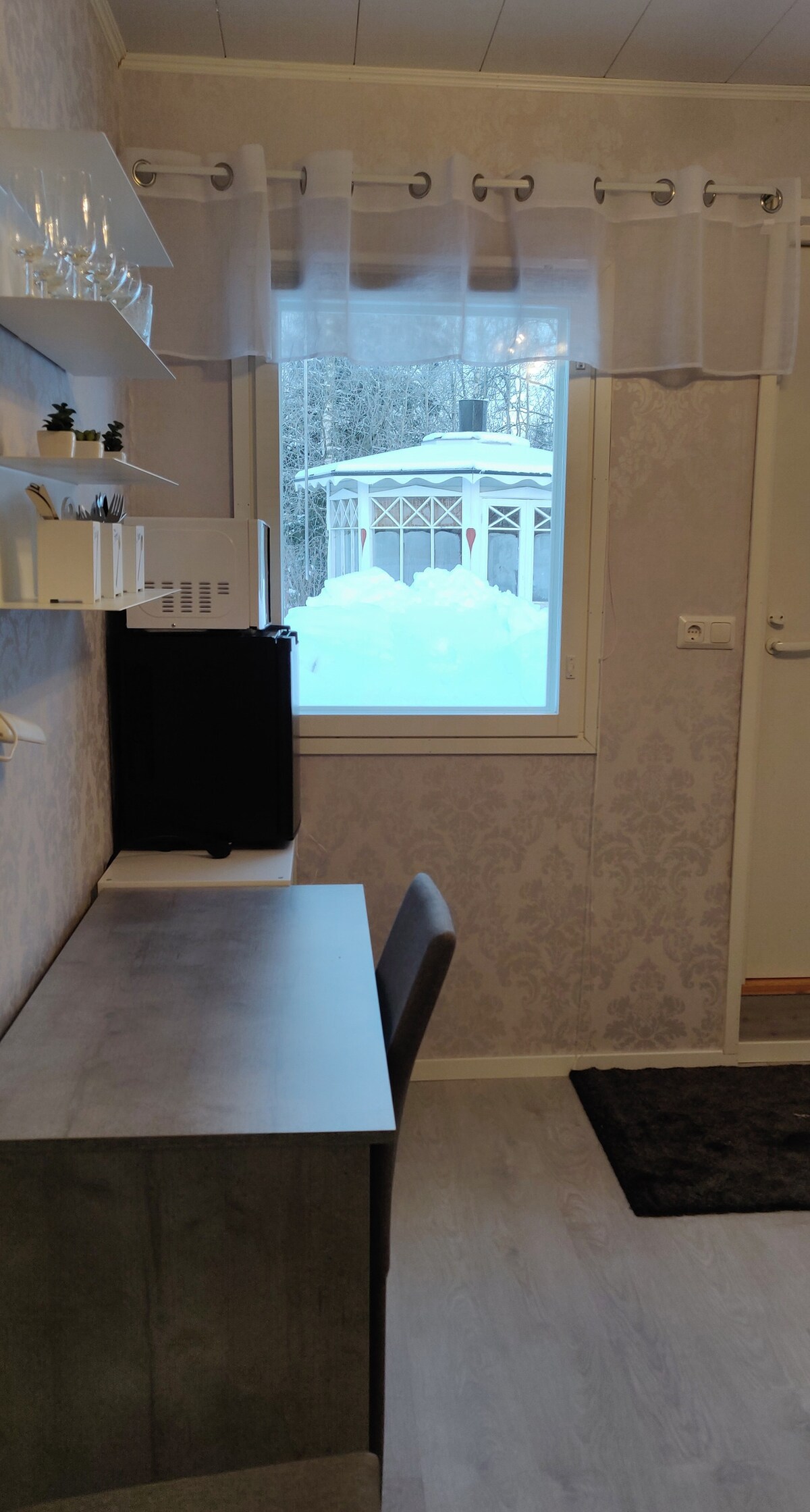 Notre chambre à louer est son propre espace qui est en contact avec dépendance. Il y a un lit de 120 cm de large dans la chambre. Les autres équipements que nous avons sont le petit réfrigérateur, la bouilloire électrique, le four à micro-ondes et la vaisselle. Nous vous offrons également le thé et le café instantané dans la maison. Il y a sa propre place de parking pour votre voiture et une place pour brancher le chauffage de la voiture. En été, vous pouvez vous asseoir et traîner dans la grande cour. La cour est partagée avec les propriétaires de la maison. Veuillez noter qu'il n'y a pas de télévision ou de WiFi dans la chambre ! ! !