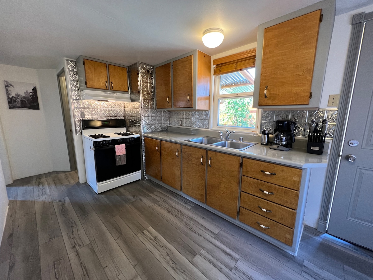 Détendez-vous dans ce logement élégant récemment rénové. La casita est décorée sur le thème du charme du Nouveau-Mexique et des points forts modernes. La chambre comprend un nouveau lit Queen Size et il y a également un matelas en mousse Queen Size pliable dans le séjour. La table de la salle à manger peut accueillir quatre personnes. Le porche arrière est une petite oasis où vous pourrez profiter d'un moment de calme ou d'un repas. Les grands groupes peuvent également réserver la maison d'à côté.