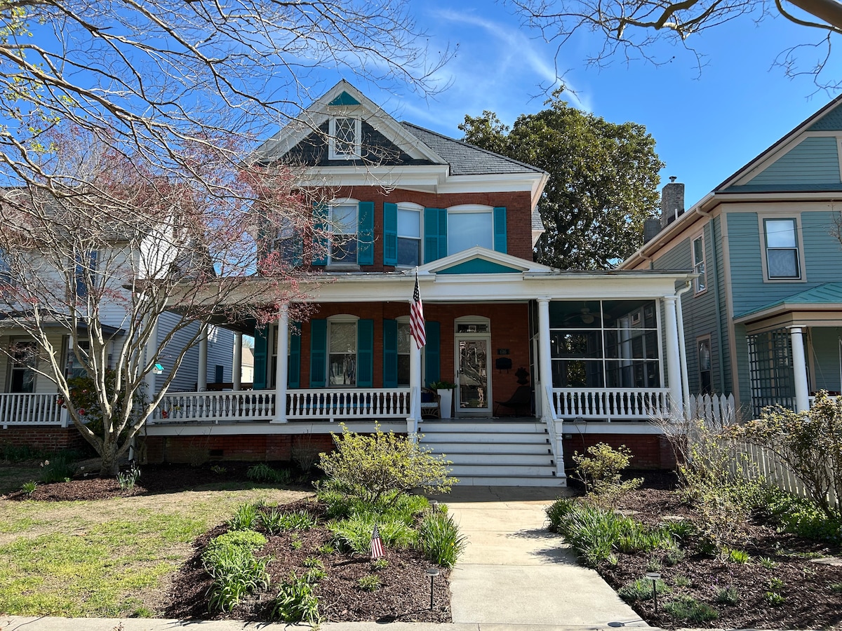Bienvenue à The MT Nest ! Détendez-vous dans notre charmante maison Sears centenaire au cœur du quartier historique de Cape Charles. Profitez des matinées sur le porche à l'ombre d'arbres majestueux. Marchez jusqu'à la plage l'après-midi. Puis flânez à quelques pâtés de maisons des restaurants et boutiques le soir. Le parc central de l'autre côté de la rue propose des concerts d'été, une aire de jeux et une fontaine. Profitez du calme et ralentissez votre vie pour quelques jours de bonheur !