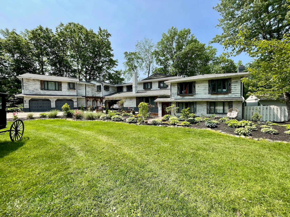 Experience refined country living at this elegantly appointed farmhouse, tucked into a secluded and pristine valley. Surrounded by natural beauty, the property features wooded walking trails that follow the west branch of the Cuyahoga River and offer sweeping views at every turn. Enjoy peaceful mornings overlooking the pond, afternoons exploring shaded forest paths, and golden evenings framed by autumn foliage and stately pines. Blending rustic charm with elevated comfort and private relaxation.