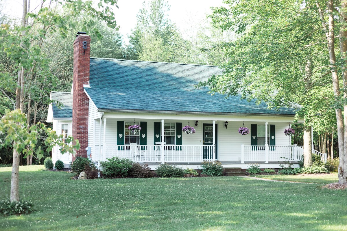 Patchen Hill Farm House, Tree Farm & Arboretum est une merveilleuse vieille ferme de 120 acres avec une grange, des vergers de pommes, des buissons de baies, des forêts, des sentiers, des étangs et des arbres feuillus. La maison dispose de quatre chambres avec salon supplémentaire, salon, salle à manger, buanderie, salle de jeux, cuisine avec coin repas. C'est une merveilleuse maison ancienne avec du charme et un attrait vintage. Louez la maison entière. Il y a de la randonnée, de la pêche, de la cueillette de baies et de pommes, et plus encore. Idéal pour les familles et les amis. Animaux acceptés.