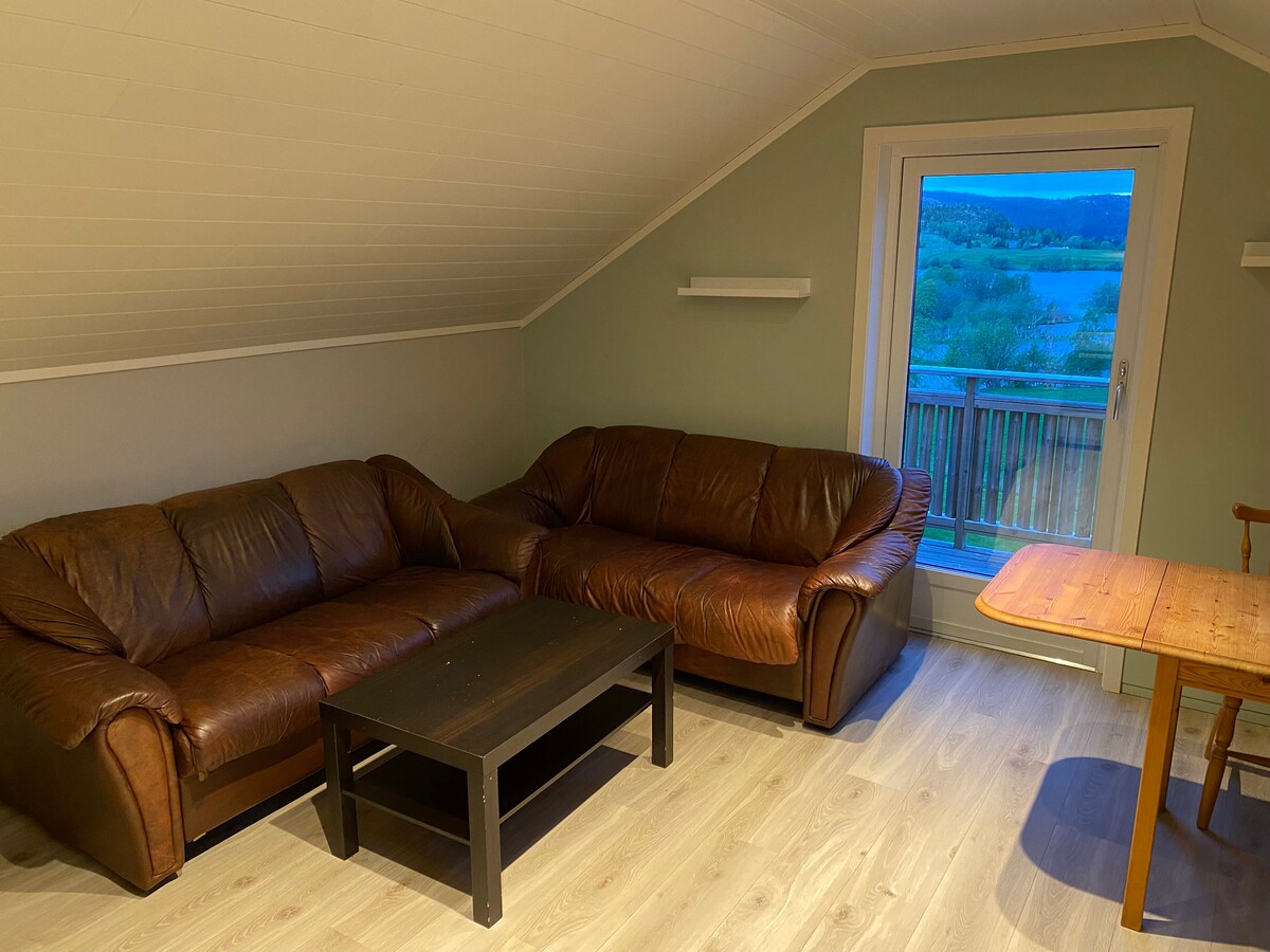 Petit appartement mansardé avec belle vue dans un cadre rural. Récemment rénové. Situé entre Stavanger et Bergen. À 500 mètres de l'autoroute E39. À 20 minutes de Haugesund et Karmøy. Belles zones de randonnée. Une chambre, petite salle de bain, salon/cuisine ouverte. Toit en pente dans la salle de bain et dans certaines parties du salon. Petite télévision murale avec Chromecast L'appartement est situé dans la cour de notre ferme, mais est perçu comme privé. Bon parking. Entrée commune avec un autre appartement. Parfait pour un séjour lors d'un voyage d'affaires, ou comme courte halte lors d'un voyage de vacances