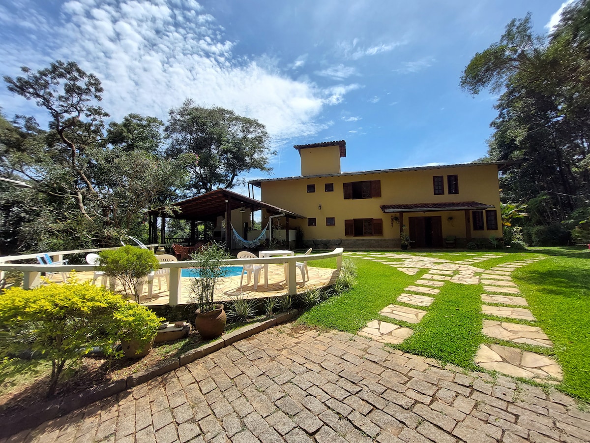 Maison de style européen, salle de cinéma avec TV 75 pouces, 6 chambres, dont 2 suites, une avec hydro, et un lit queen avec matelas magnétique électrique, 3 avec balcons, pouvant accueillir jusqu'à 14 personnes. Terrain de 12 000 m² avec piscine privée et chauffée, spa pour 9 personnes chauffé, cheminée, espace gourmet avec barbecue avec poêle à bois, sauna à vapeur, court avec mini-golf et pétanque, belle vue plus noble de Nova Lima. À proximité de la copropriété Alphaville Linda vista. Profitez du climat agréable