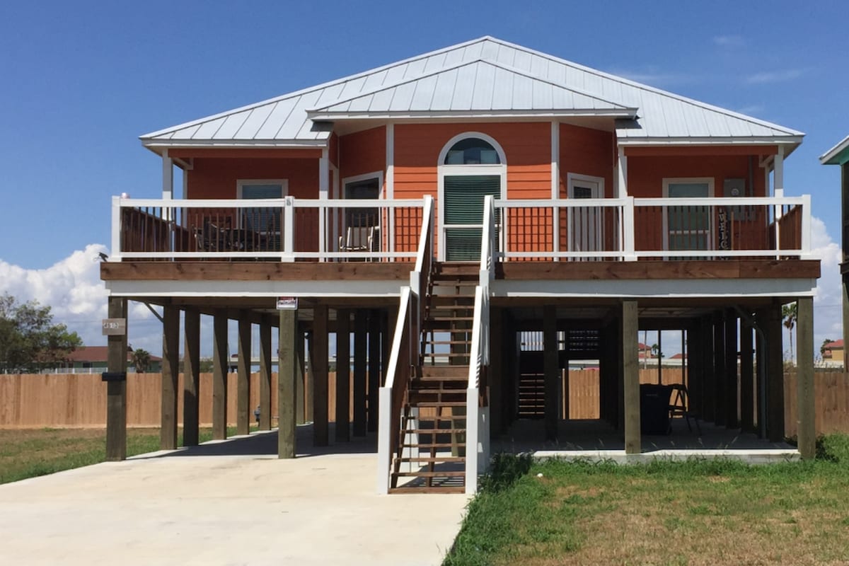 Il s'agit d'une propriété en bord de mer sur North Beach. Vue sur le lever du soleil. Nous sommes la seule maison de plage sur la plage. Elle est à proximité (5 min en voiture) de l'aquarium d'État du Texas et du musée Lexington ou vous pouvez également utiliser la promenade de la plage depuis l'extérieur de la maison. La zone de pêche et l'aire de jeux sont accessibles à pied. Excellent endroit pour profiter du soleil et de la plage ! Cette maison est propre et prête pour que vous puissiez profiter de vos vacances. Nous avons une autre maison de l'autre côté de la rue pour accueillir jusqu'à 8 voyageurs supplémentaires, envoyez-moi un message.