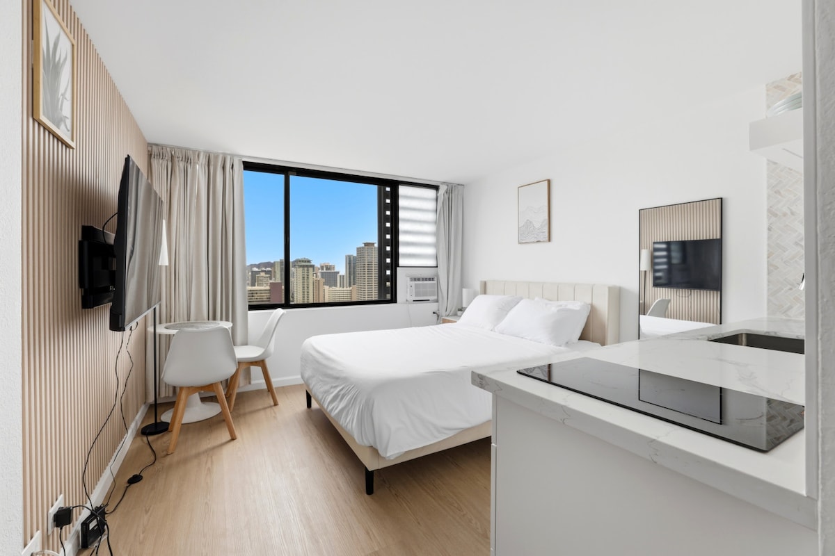 Studio moderne ensoleillé avec vue sur l'océan - Waikiki Beach
