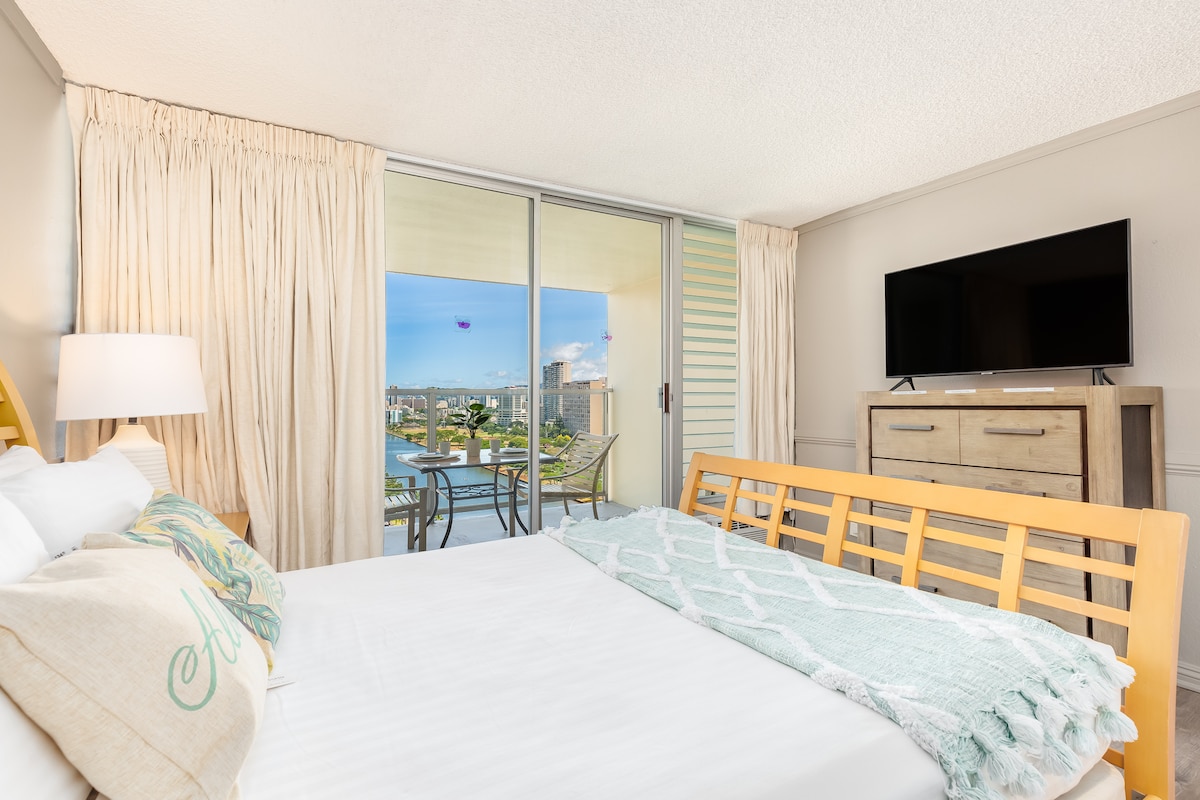 Rassemblez vos souvenirs les plus précieux d'Hawaï avec ce superbe studio de style boutique au cœur de Waikiki. Idéalement situé sur Seaside Ave. à quelques minutes de la célèbre plage de Waikiki, des centres commerciaux et des restaurants gastronomiques. Profitez d'une grande télévision HD4K de 65 pouces, d'un système de climatisation split, d'un lit King Size avec matelas en mousse à mémoire de forme et d'un balcon privé spacieux avec vue sur le canal et la montagne. Ce studio est le meilleur choix pour les couples, les petits groupes de voyageurs et les familles. Aloha !