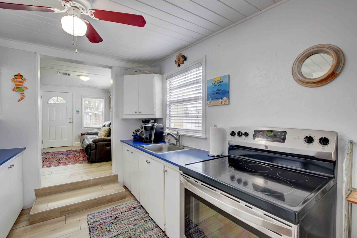Un chalet de plage chaleureux, confortable et paisible à quelques pas de l'océan. Il y a 3 chambres à l'étage. La suite parentale dispose d'un lit Queen Size, d'une baignoire à remous, d'une grande douche à l'italienne et d'un balcon privé. La 2e chambre dispose d'un lit Queen Size avec une salle de bain Jack-n-Jill à la 3e chambre avec un lit complet. Toutes les chambres disposent d'oreillers en duvet et de rideaux occultants. La chambre du rez-de-chaussée dispose d'un futon et est adjacente à une salle de bain complète. Nous avons un foyer, des chaises longues, un parasol et une glacière prêts pour une courte promenade jusqu'à la plage...
