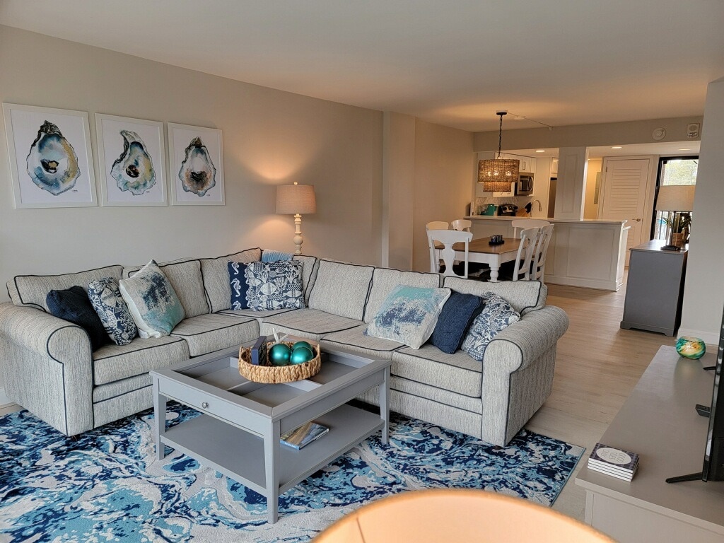 Bord de lac à Sea Colony Resort ! Marchez jusqu'à la plage, les piscines, le tennis/pickleball, le putting green, le pétanque, le shuffleboard, les étangs de pêche, le centre de remise en forme et plus encore ! Sécurité 24h/24. Entièrement rénovée. Cuisine bien équipée s'ouvre sur un salon/salle à manger lumineux avec des sièges pour 6 personnes. Climatisation, barbecue au charbon de bois, laveuse/sécheuse, wifi, 3 téléviseurs à écran plat et 3 lits queen size. Tramway de plage et piscine de l'autre côté de la rue. Grande terrasse avec vue sur le lac. REMARQUE : la cheminée est dangereuse et NE PEUT être utilisée ! Nettoyé par des professionnels entre les voyageurs.