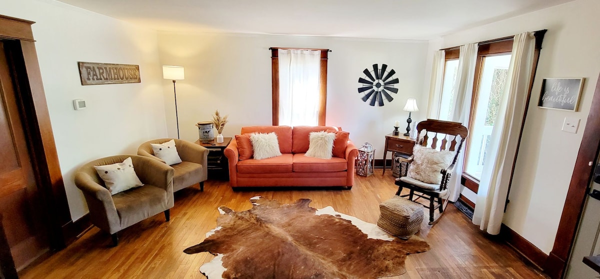 Dormez paisiblement dans cet appartement d'hôtes entièrement meublé de 600 pieds carrés situé à l'avant de l'I-70 à Oak Grove sur 18 acres avec 2 étangs et des pâturages vallonnés. Une allée en gravier mène à la propriété où vous disposerez d'une place de parking en béton et d'une allée pavée sans marches menant à la porte d'entrée de l'appartement. Reposez-vous profondément sur un matelas taille Queen Tuft n Needle dans une chambre avec des stores occultants et divers oreillers pour satisfaire votre confort. Cuisine entièrement équipée, buanderie, 2 téléviseurs intelligents.