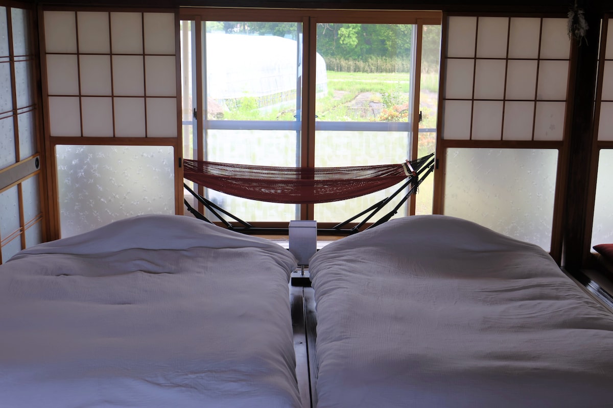 Une ferme de 125 ans a été rénovée avec des méthodes de construction traditionnelles. Elle est entourée de vignobles et de champs au pied du mont Hayakkemine dans les 100 montagnes célèbres du Japon. Nous acceptons les réservations pour l'ensemble du bâtiment, limitées à un groupe par jour.Le nombre de personnes pouvant séjourner ici peut accueillir jusqu'à 10 personnes. Il est souvent utilisé comme base pour les voyages à Tohoku par les camarades de classe, les collègues de l'entreprise et plusieurs familles.Veuillez vous détendre dans l'espace spacieux.Bien sûr, vous pouvez aussi rester seul. Les enfants de moins de 12 ans (âge de l'école primaire) seront facturés à un tarif réduit de 3 300 yens (taxes incluses) par personne et par jour, donc veuillez nous en informer par message au moment de la réservation.Nous modifierons le montant pour le montant réduit. De plus, en tant que réduction pour les nuits consécutives, pour les clients séjournant 3 nuits ou plus au tarif adulte, nous réduirons le prix de 500 yens par personne et par jour à partir de la 3e nuit.Les tarifs pour enfants ne sont pas éligibles.Nous modifierons également le montant après la réduction après que vous ayez effectué la réservation.