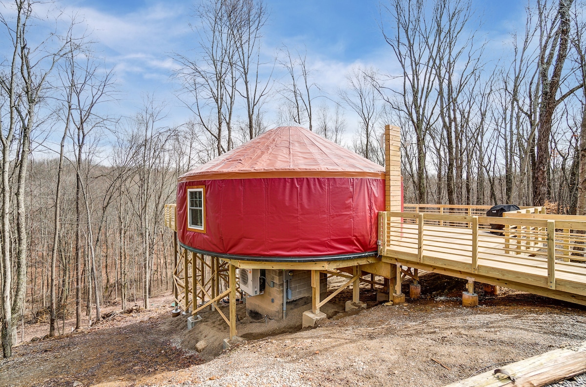 Escape to Turtle Cave Yurt for a peaceful retreat designed for couples or solo adventurers seeking quiet and connection. Nestled in the heart of Red River Gorge, you’ll wake to birdsong and fresh mountain air—immersed in nature without sacrificing comfort. Spend your days hiking scenic trails, then return to soak in the hot tub or gather around the fire pit for s’mores under the stars. At night, relax beneath the yurt’s dome skylight and fall asleep stargazing—no tent, no bugs, no hassle.