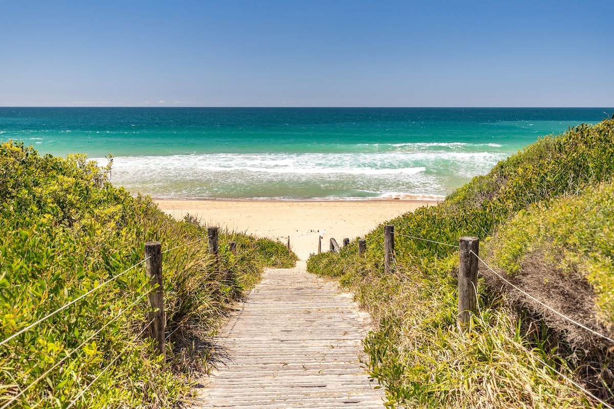 À 3 heures paresseuses du quartier des affaires de Sydney, vous trouverez Oceanic 21 : une escapade en bord de mer loin de la vie quotidienne. Parfaitement située en face de la plage principale idyllique de Forster, cette maison loin de chez vous offre tout le confort que vous pouvez imaginer. Même travailler à distance depuis la table de la cuisine ne ressemblera pas à du travail avec cette vue en arrière-plan. Laissez la voiture à la maison pour une soirée sans stress car Oceanic 21 est à deux pas des cafés, restaurants et boutiques locales.