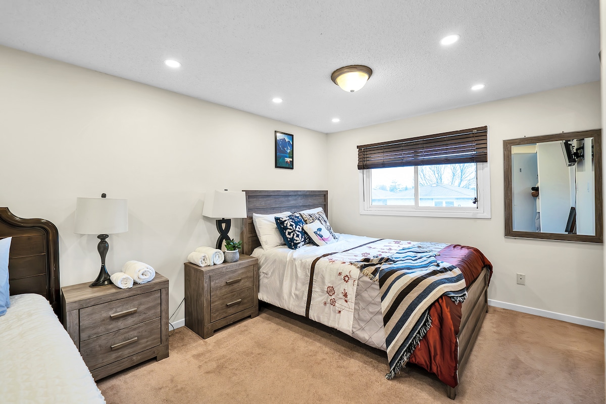 Welcome to our cozy 2-bed, 1-bath basement apartment, perfect for a comfortable stay in the Churchill meadows area. Each room has a queen-sized bed, and the living area has a comfy sofa, flat-screen TV, and free Wi-Fi. Whether you’re here for business, visiting family, or simply exploring the city, our basement suite is the perfect starting point for your Mississauga adventure. We look forward to welcoming you!