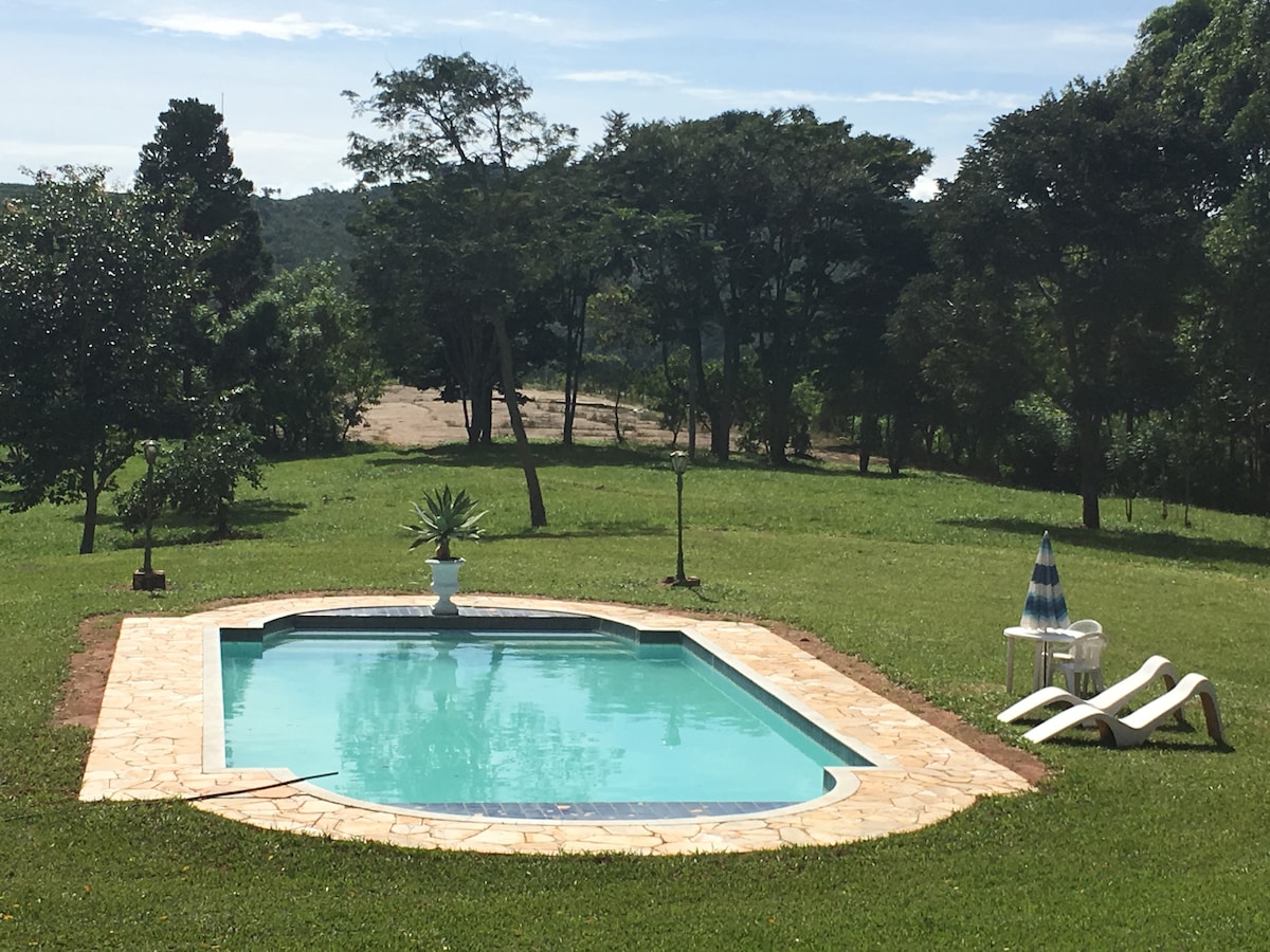 Rassemblez votre famille et vos amis pour profiter de cet hébergement paisible, entouré d'une nature exubérante, avec accès par une allée carrossable, à proximité de toutes sortes de commerces, pharmacies, supermarchés. Votre repos a maintenant un nom ; Fazendinha Bela Vista ! ! ! Wifi, piscines CHAUFFÉES, sauna en verre avec vue panoramique, étang pour la pêche et promenade en pédalos, poêle à bois, barbecue grill et beaucoup, beaucoup de nature ! ! ! Notre cuisine est équipée avec tout ce dont vous avez besoin pour en profiter sans soucis.