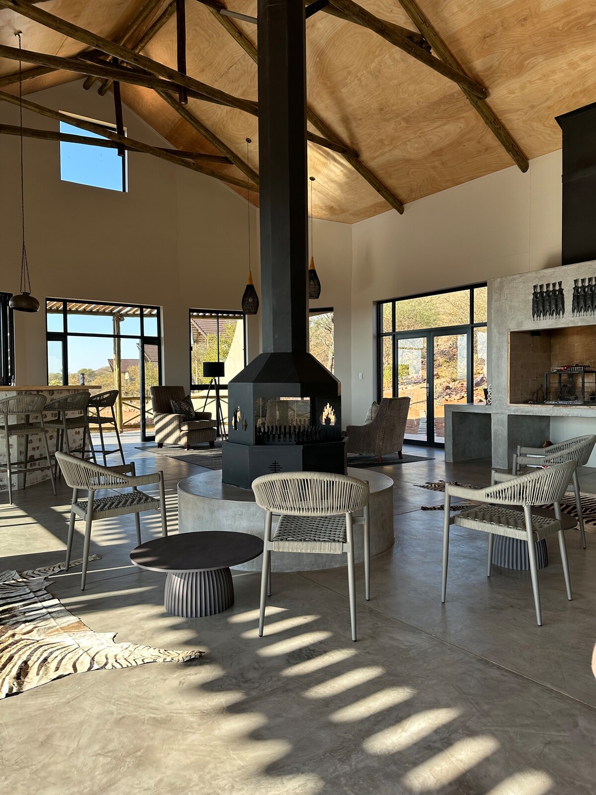 Amusez-vous avec toute la famille dans cet endroit élégant. Belle ferme moderne indépendante de 5 chambres et trois salles de bain. Salon et salle à manger spacieux, cuisine moderne et espace braai à l'étage. Idéal pour un groupe ou plus d'une famille À 12 km de la route principale menant à Windhoek, à 17 km de Gobabis, à 112 km du poste de frontière de Buitepos. Idéal à mi-chemin des principales attractions de Namibie.