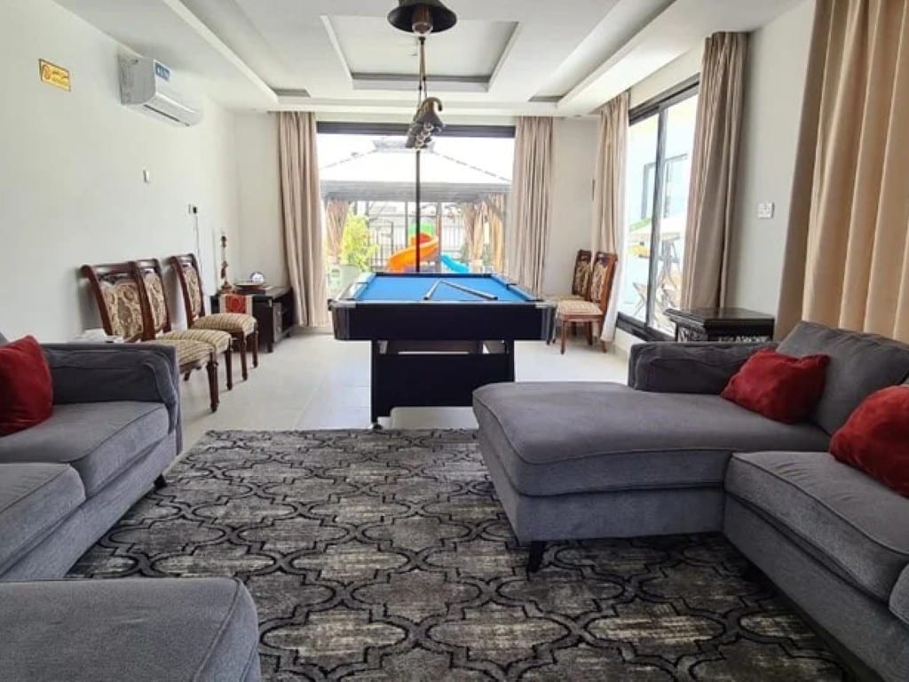 Cette villa 5 étoiles luxueuse, moderne et unique est le choix idéal pour les familles, les couples et les amis. Elle est officiellement agréée par le ministère du Tourisme et classée parmi les 5 meilleures villas du Sultanat d'Oman. Profitez d'une piscine privée et d'un jacuzzi, amusez-vous avec le billard et le baby-foot, et découvrez un cinéma donnant sur la piscine. Avec ses intérieurs élégants, ses équipements d'hygiène haut de gamme, ses sièges extérieurs et son espace barbecue, cette villa offre une expérience de villégiature privée pour tous.