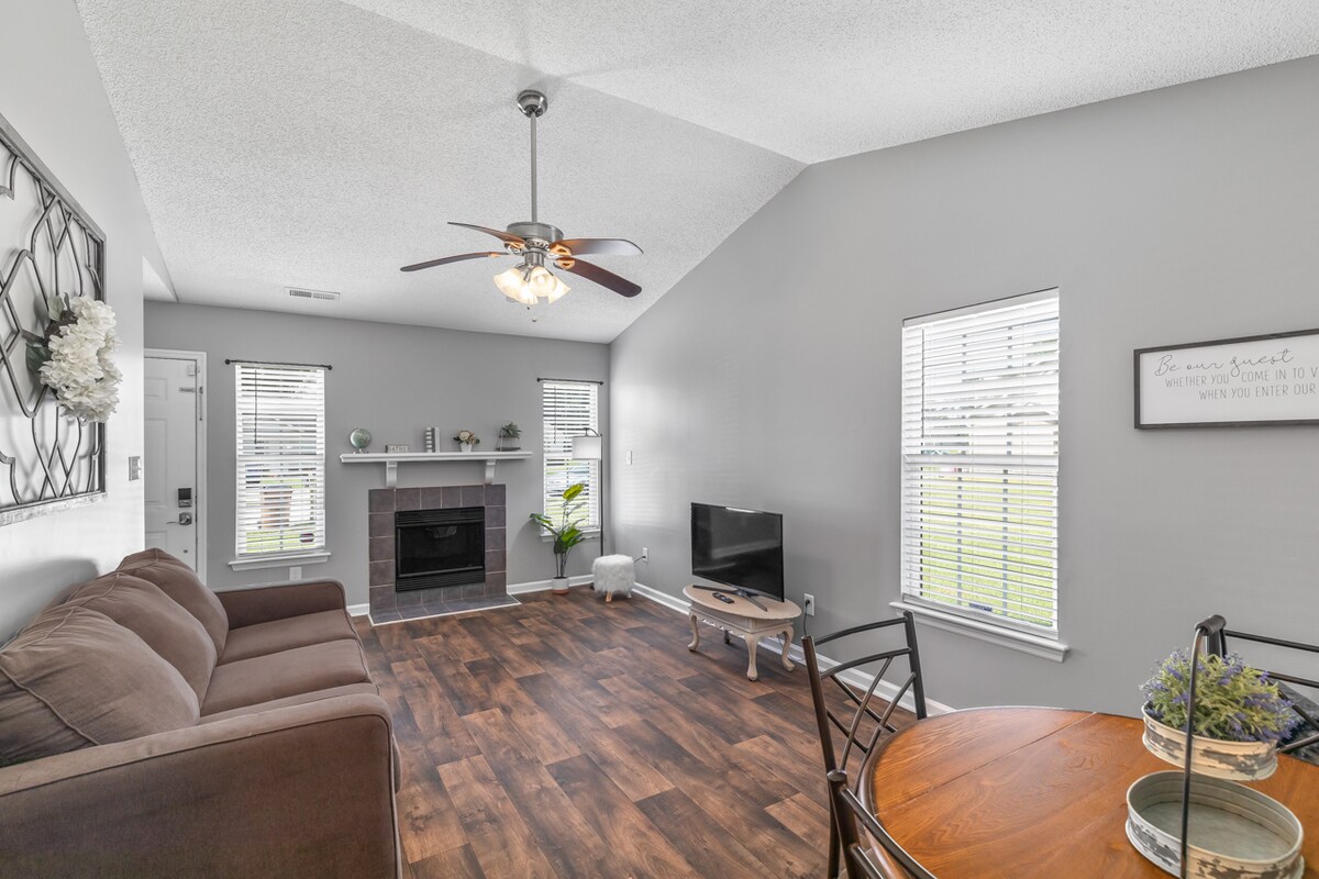 Cette magnifique propriété est nichée dans le centre-ville historique de Jacksonville, juste en face de Riverwalk Park. Proche de Camp Lejeune, Camp Johnson et New River Air Station. Sentez-vous chez vous dans un quartier privé entièrement meublé. Peut accueillir jusqu'à 6 personnes confortablement et jusqu'à 8 personnes en se serrant un peu, car nous offrons un matelas pneumatique.