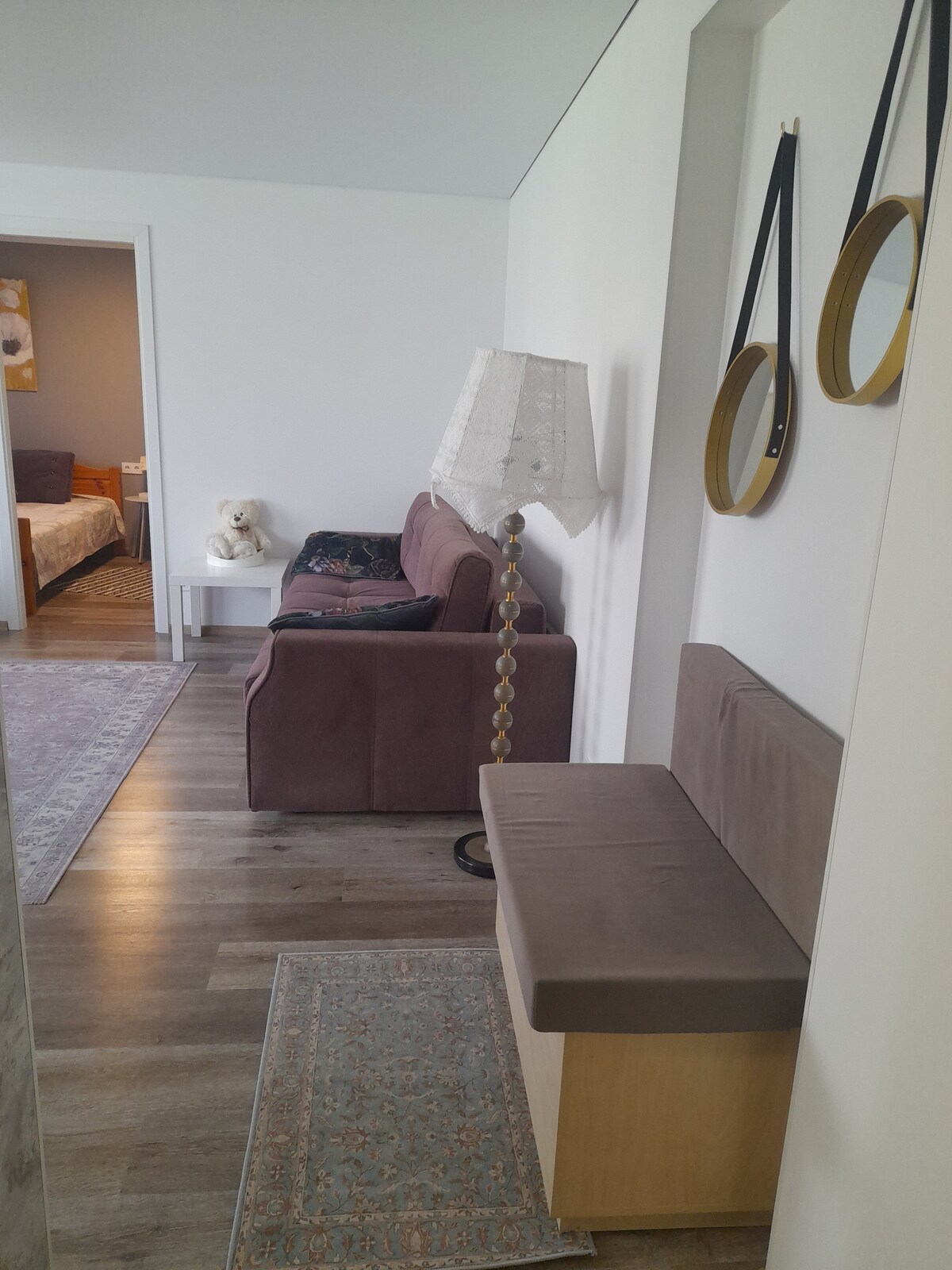 L'appartement dispose d'un aménagement spacieux avec tout ce dont vous avez besoin - Dans la cuisine, une technique de cuisine et de vaisselle, une cafetière à capsules + capsules de café, une bouilloire électrique, un micro-ondes. Un canapé lit pliant dans le salon, une télévision 55"et Internet. La chambre est une chambre privée avec une armoire et des rideaux occultants. L'appartement est équipé d'une machine à laver, d'un séchoir à linge, d'un sèche-cheveux et d'un aspirateur L'appartement est situé dans un lotissement calme, à distance de marche du centre commercial, du cinéma, des épiceries Parking gratuit et caméra de surveillance devant la maison Gare routière à 1,5 km