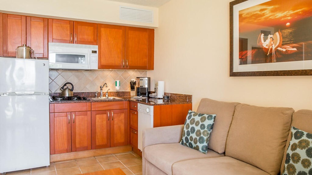 Suite d'une chambre Jusqu'à 47 m² Peut accueillir jusqu'à 4 adultes Un lit king size Un canapé-lit queen size Salon séparé et privé Produits de bain exclusifs à l'aloe vera d'Aruba Internet sans fil haut débit gratuit Cuisine entièrement équipée avec lave-vaisselle, cuisinière, réfrigérateur de taille normale Balcon ou patio privé Cafetière Plancher en carrelage Climatisation centralisée et ventilateurs de plafond Deux téléviseurs LCD à écran plat de 42 pouces