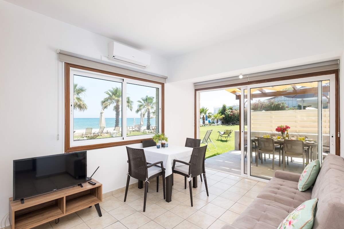 Fabuleux appartement d'une chambre, juste sur la plage, avec vue imprenable sur le bord de mer. C'est proche des installations de sports nautiques, de la plage touristique de Chypre, des hôtels et des restaurants. Une excellente façon de commencer votre journée en vous réveillant avec la vue imprenable sur les eaux bleues. De belles plages de sable fin. Vous les trouverez également très pratiques car elles se trouvent à environ 15min en voiture de l'aéroport, 20min d'Ayia Napa, 30min de Nicosie et à moins d'une heure de Limassol!