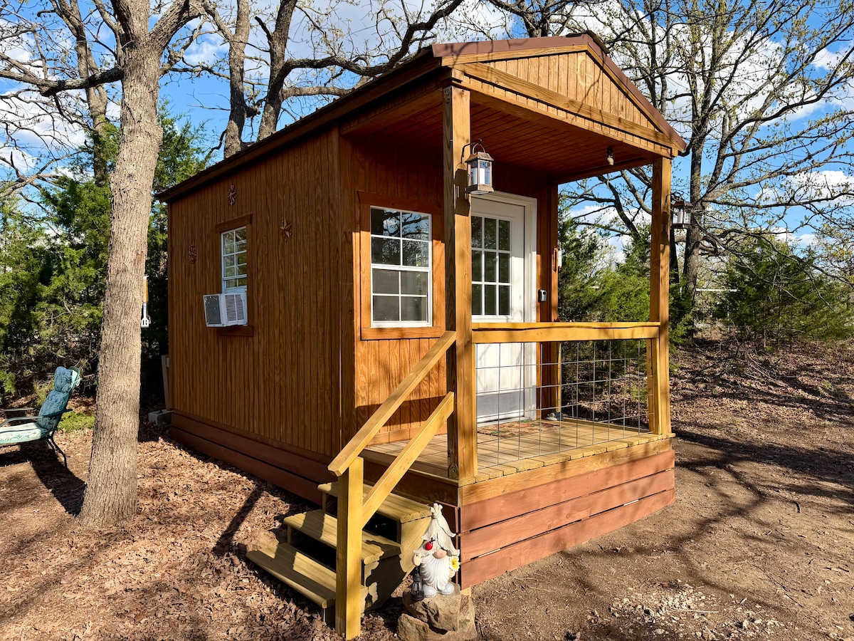 Notre cabane est située sur 5 acres de propriété boisée, avec une chambre principale/un salon, une salle de bain, une cuisine et une buanderie. La terrasse extérieure donne sur le lac. La cuisine dispose d'un réfrigérateur, d'une cuisinière/four et de vaisselle/ustensiles pour préparer les repas. Équipements de base : lave-linge et sèche-linge, cafetière Keurig, micro-ondes, télévision, foyer extérieur et gril extérieur. Situé à 10 miles à l'ouest de Skiatook sur l'autoroute 20. Il y a un sentier pédestre vers le lac et aussi un site de tente à l'extérieur. Proche de la rampe Black Dog.