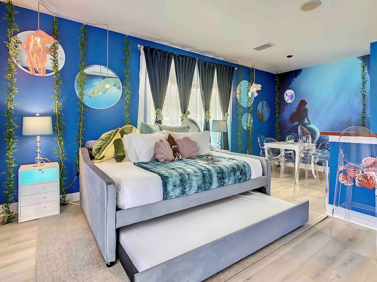 L'équilibre parfait entre DESIGN ÉLÉGANT, CONFORT LUXUEUX et DIVERTISSEMENT SANS FIN, magnifiquement situé avec une vue imprenable sur le vaste complexe hôtelier Reunion Resort de 3,5 miles carrés. Vous aurez votre propre piscine privée, un spa, une salle de cinéma-jeux STAR WARS avec flipper, des jeux d'arcade classiques et un karaoké, une chambre pour enfants MARVEL avec toboggan et lits superposés, la dernière Xbox Series S, une vaste terrasse de 2000 pieds carrés, un foyer et même un placard HARRY POTTER caché sous les escaliers, à quelques minutes de Disney.