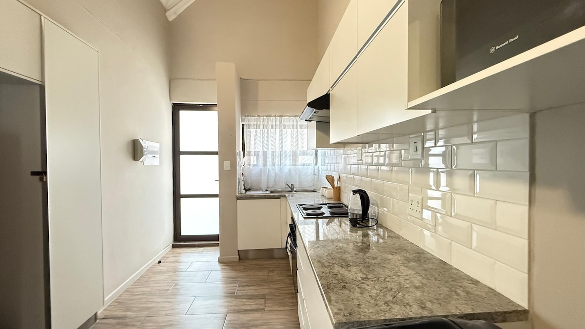 Luxurious 1-Bedroom Self-Catering Retreat Elegant, private, and perfect for two, solo or business stays. Enjoy a fully equipped kitchen, parking, Wi-fi, smart TV in the lounge and a comfortable bed. Centrally located for a memorable stay in comfort and style.