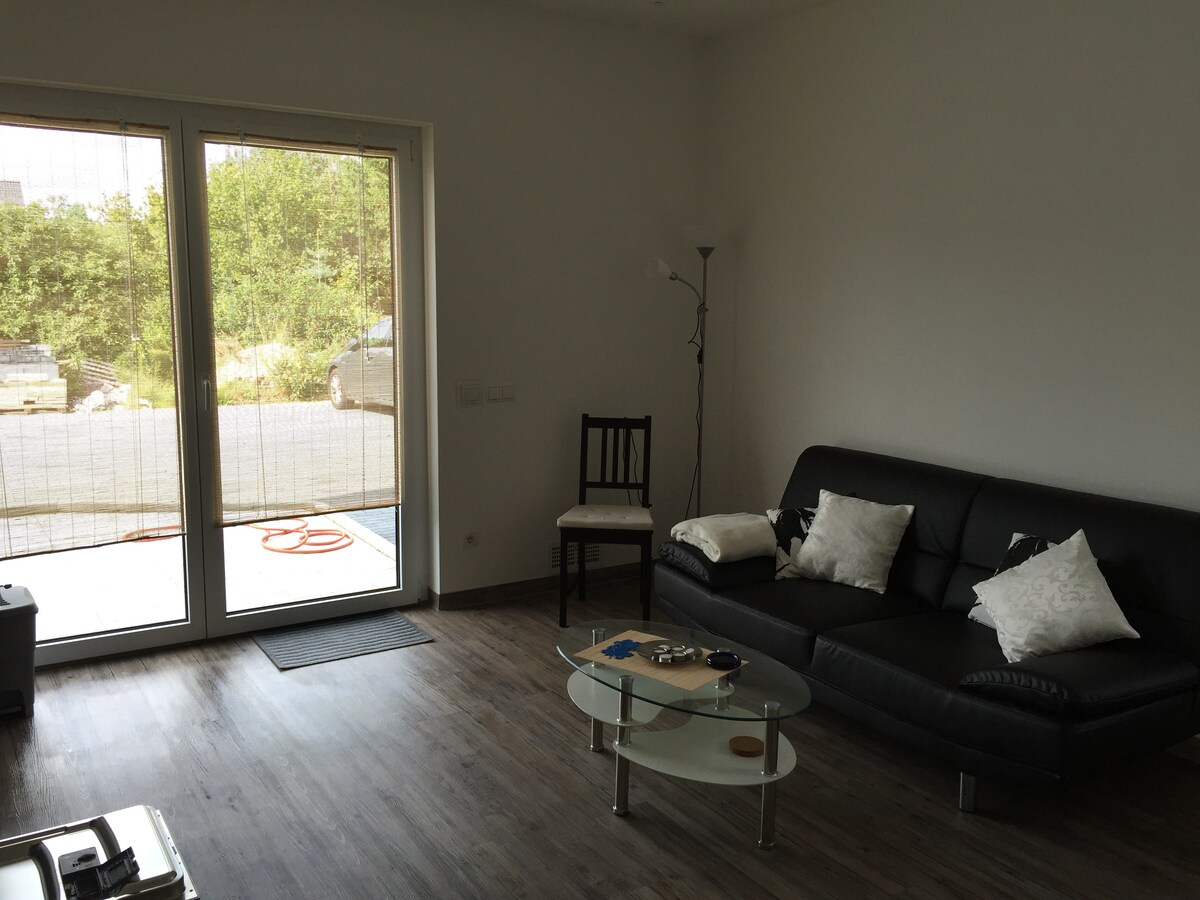 Le logement vous offre un équipement haut de gamme avec une cuisine équipée et tout ce dont vous avez besoin pour vivre et vous détendre. Une télévision avec Netflix et Prime Video ainsi que le Wi-Fi sont disponibles. L'appartement est situé dans un bungalow directement sur une immense forêt qui invite à la promenade. Le temps de trajet vers la ville ou l'usine VW est inférieur à 10 minutes. Les commerces pour les besoins quotidiens, tels que les boulangeries ou les supermarchés, sont accessibles à pied. Bienvenue !