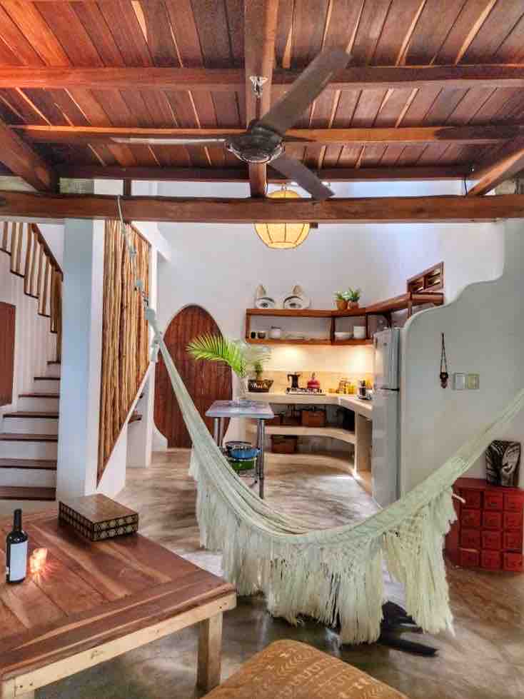 La Casa del Cenote Negro est idéale pour les familles amoureuses de la nature qui veulent profiter de la lagune de Bacalar. Elle dispose d'un plan d'étage ouvert rustique avec une grande cuisine et un coin repas avec beaucoup d'espace pour une réunion de famille. Il y a deux chambres avec des lits King Size et une 3e chambre avec 2 lits matrimoniaux supplémentaires. Il y a une terrasse au bord du lac avec une vue imprenable sur le Cenote Negro, de nombreux sièges pour les repas en plein air et des hamacs. Le quai au bord du lac est partagé avec les invités des autres logements de la propriété.