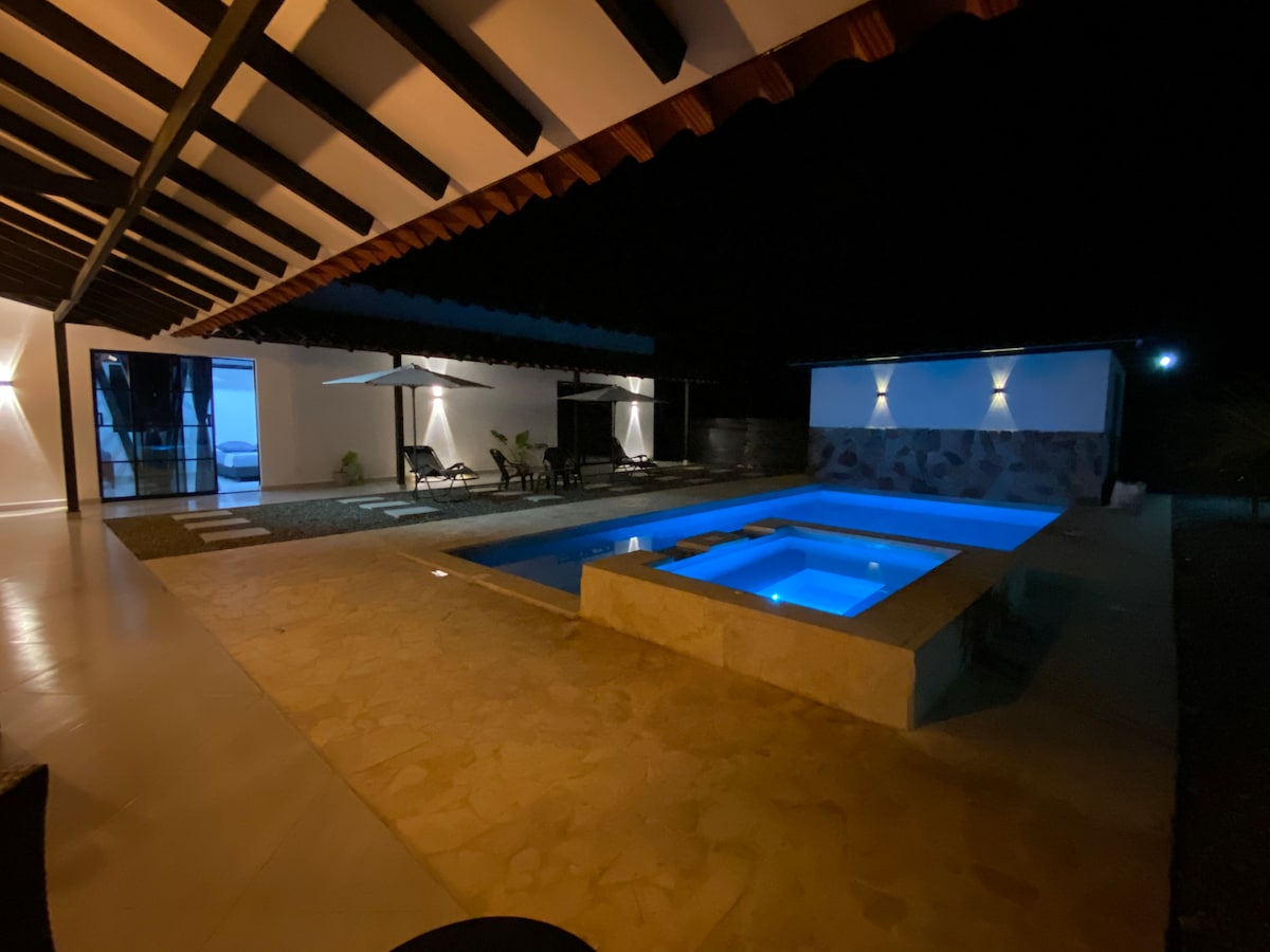 Maison exclusive avec piscine privée et jacuzzi (tarifs de 6 à 10 personnes), spacieuse, moderne, avec des finitions luxueuses et entièrement équipée pour un séjour très confortable. Un lieu idéal pour se détendre, se relaxer et partager des moments inoubliables en famille, entre amis ou en couple. Situé à deux pâtés de maisons du parc principal de Santa Fe de Antioquia, un lieu magique d'une grande richesse historique et culturelle, son architecture coloniale et ses rues pavées, qui sont encore préservées, sont des sites du patrimoine national.