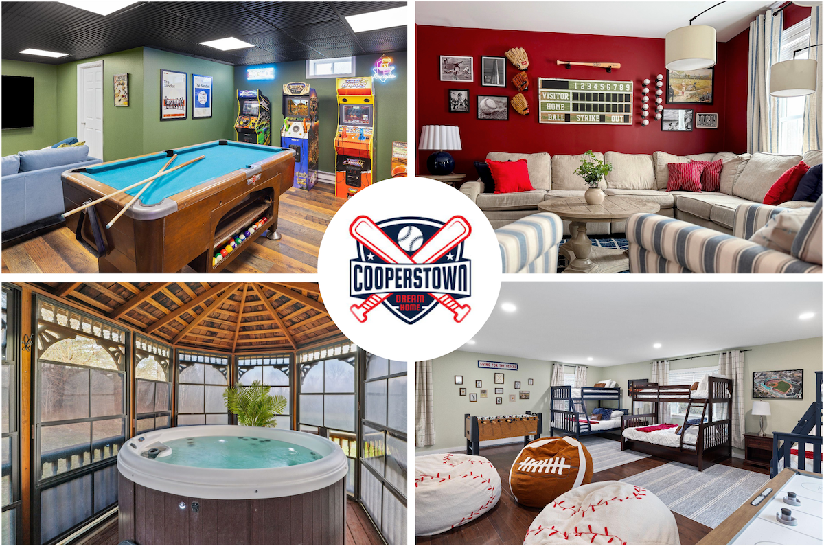 Charmante maison de 4 lits et 2 salles de bain dans le nord de l'État de New York, parfaite pour les familles, les couples et les animaux de compagnie. Comprend 2 salons, un coin repas, une cuisine et une piscine privée avec une vue imprenable. Profitez d'une salle de cinéma personnelle pour vivre une expérience inoubliable. Proche de Oneonta et Cooperstown, qui abrite le Temple de la renommée du baseball. Une retraite confortable et spacieuse pour votre prochaine escapade !