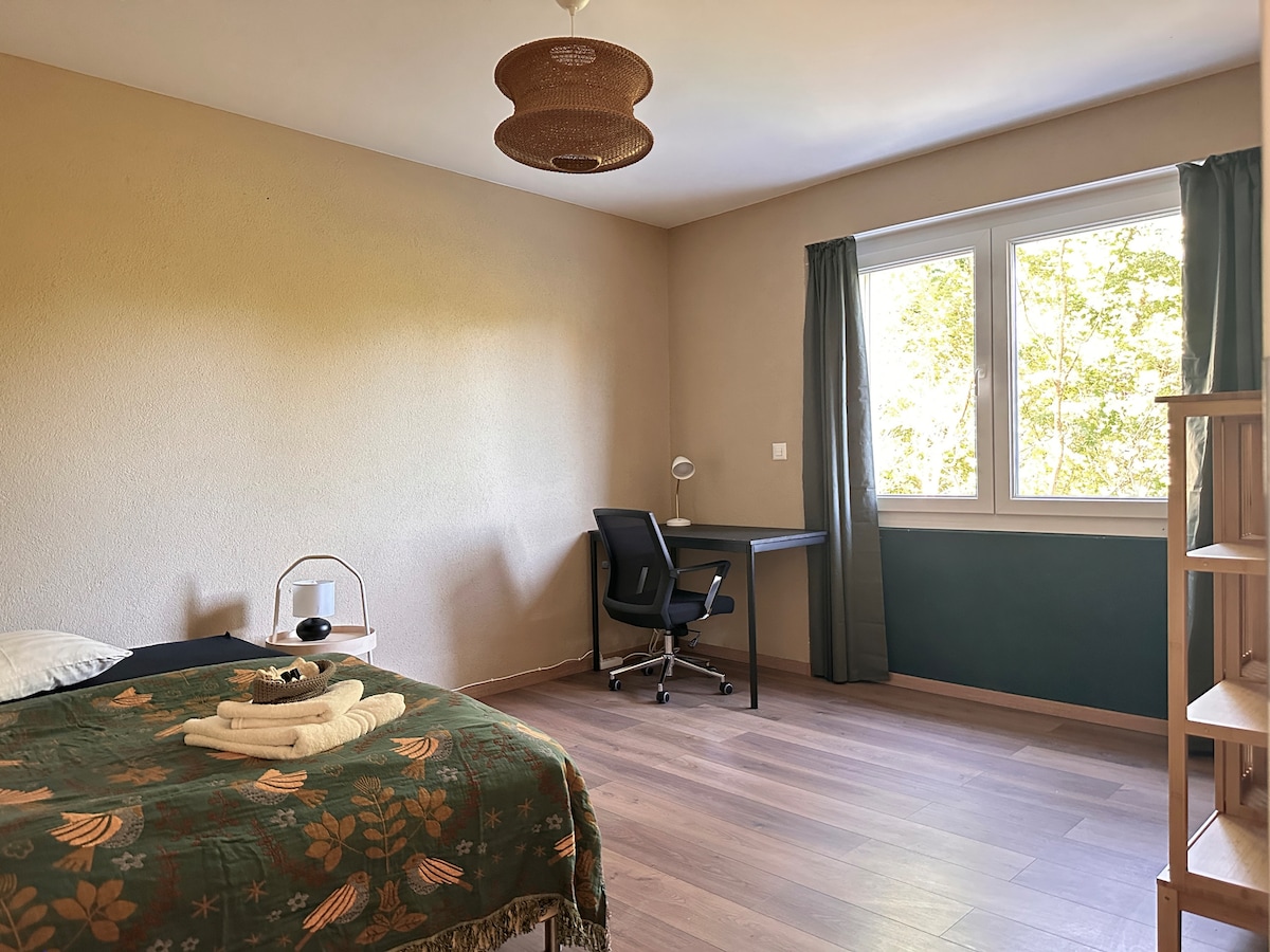 Lehne dich zurück und entspanne dich – in dieser ruhigen, stilvollen Unterkunft. Trotz ruhiger Lage erreichst du die Stadt in wenigen Minuten mit dem Auto. Kein Auto? Kein Problem, eine Busstation ist gleich vor der Haustür. Was erwartet dich? Eigener Eingang, Wohnzimmer mit TV (Smart TV, Netflix,wifi free), Eigene Küche mit Esstisch. Grosses Schlafzimmer mit einem Kleiderschrank. Modernes grosszügiges Badezimmer mit begehbarer Dusche und einem Waschturm. 60m2 Garten mit Sitzgelegenheit