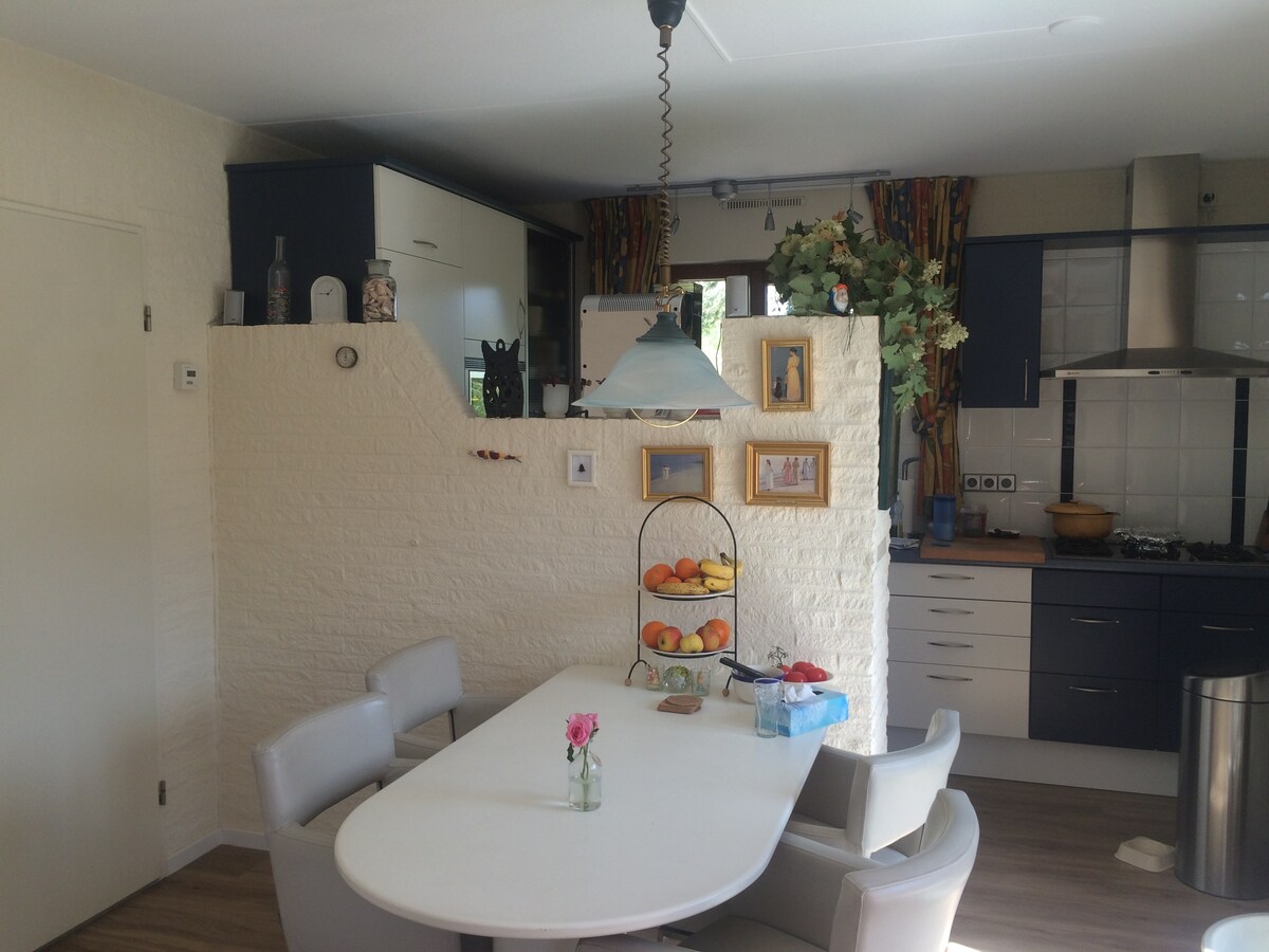 Cet appartement offre beaucoup d'intimité avec son propre jardin et son entrée abritée. Au rez-de-chaussée, vous trouverez un salon confortable avec une cuisine ouverte et des portes-fenêtres qui offrent beaucoup de lumière et d'espace. En plus du chauffage au sol, il y a un poêle à bois confortable. Un escalier ouvert mène à la partie nuit, qui comprend un grand lit double et 2 lits simples, partiellement séparés par des cloisons. Pour amener votre chien, nous facturons 15 euros en espèces à l'arrivée. Toutes les pièces sont finies avec des matériaux naturels élégants. Tout le rez-de-chaussée en béton est équipé du chauffage au sol. Le salon confortable dispose d'un canapé, d'un poêle à bois et d'une télévision avec Netflix (pas de connexion TV). La cuisine est partiellement séparée par la table de cuisine en tronc d'arbre et le comptoir en granit. La cuisine offre la possibilité de cuisiner avec des appareils rétro Smeg et est équipée d'une cuisinière à gaz, d'un réfrigérateur, d'un lave-vaisselle, d'un micro-ondes combiné et d'une bouilloire. La salle de bain respire une atmosphère méridionale avec un sol en galets et un lavabo en galets. Dans la buanderie fermée, il y a une machine à laver et un aspirateur. Il y a un espace toilettes séparé. Le grenier est divisé en deux parties, avec le lit double de luxe d'un côté du mur et deux lits simples séparés de l'autre côté. La pièce avec le parquet et les lits est immédiatement relaxante. L'appartement est à distance de marche du vieux centre, où il y a un centre de village confortable avec des magasins. En vélo, vous êtes sur la plage en 10 minutes. L’appartement est entièrement neuf, confortable et très lumineux, vous vous sentirez rapidement chez vous. Vous pouvez cuisiner vous-même, si vous le souhaitez. Dès que vous entrez, vous avez une sensation de vacances, car le décor est un style de plage décontracté. La finition est très luxueuse. Les clients de l'appartement peuvent participer aux cours de yoga de Yogastudio Ouddorp à moitié prix. Le studio est à côté de l'appartement. Les clients ont leur propre jardin privé, qui est complètement protégé par une clôture. Dans le jardin, il y a un coin salon confortable, des chaises relaxantes et une grande table de pique. Mon ami et moi sommes disponibles par e-mail, WhatsApp et téléphone. Le pittoresque Ouddorp est une petite station balnéaire avec un centre de village confortable et une plage de sable de pas moins de 17 kilomètres de long. La nature est belle et la région est idéale pour le surf, le vélo et la randonnée. Le centre est littéralement à distance de marche. Un délicieux vrai boulanger est au coin de la rue. Les supermarchés sont également très proches. Autour de l'église, vous trouverez des boutiques et des terrasses accueillantes. La plage est large et agréable avec un certain nombre de clubs de plage sympas. L'arrêt de bus est adjacent au jardin. Le stationnement est gratuit sur la Stationsweg, juste à côté de l'appartement.