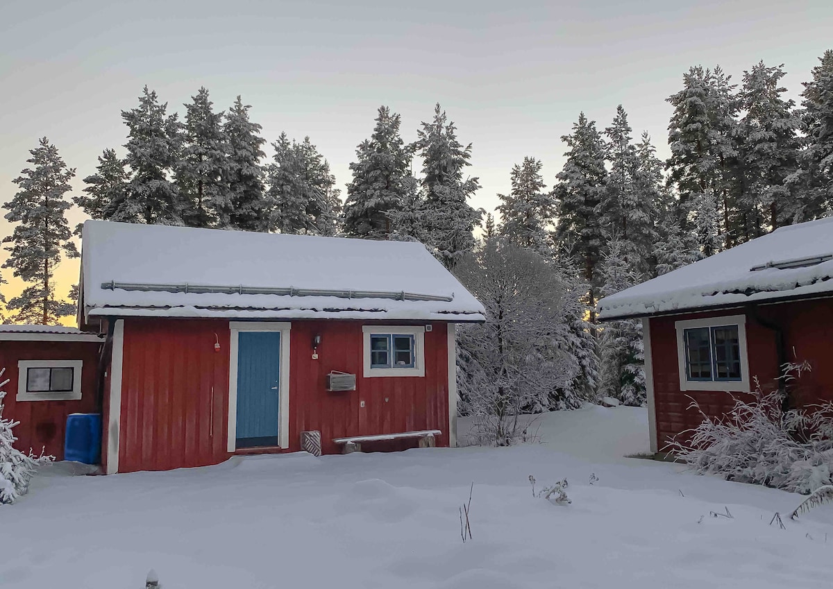 Chalet récemment rénové sur la plage de Siljan. Au milieu de la nature à 10 min de Mora ! Beaucoup de nos clients ont vu des élans et des aurores boréales depuis la fenêtre du chalet ! Possibilité de choisir en supplément * draps, * canoës, * Bain à remous à 39 degrés ! Le chalet est petit mais dispose d'une salle de bain avec douche et chauffage au sol ainsi que d'une kitchenette. Lit mezzanine et 2 canapés-lits avec un total de 4 lits qui peuvent être faits. Place de parking privée avec chargeur de voiture électrique ! Nettoyage inclus ! *selon augmentation. Bienvenue dans le calme ou l'aventure... nous sommes là pour vous accueillir !