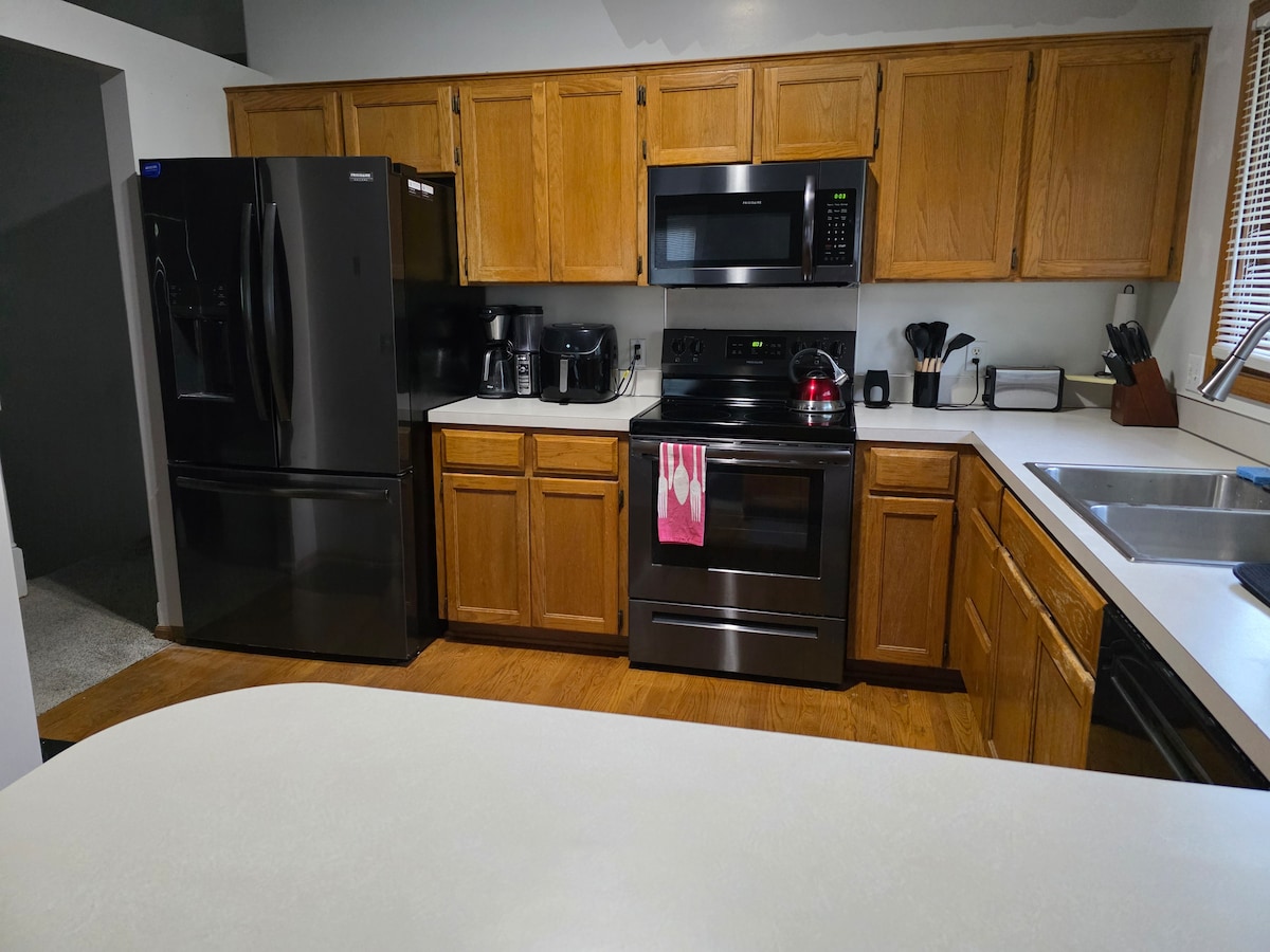 Welcome to your cozy home away from home—perfect for families, business travelers, and weekend getaways. 🛋️ Relax in Comfort Unwind on the spacious sectional. Perfect for movie nights, conversation, or kicking back. 💻 Work-Friendly Setup Stay productive with fast WiFi. 🍳 Fully Equipped Kitchen Enjoy a clean, functional kitchen with everything you need to cook and enjoy your morning coffee. 🛏️ Rest Easy Comfortable beds and a quiet area ensure a great night’s sleep. 🐕🦺 Pets Welcome!