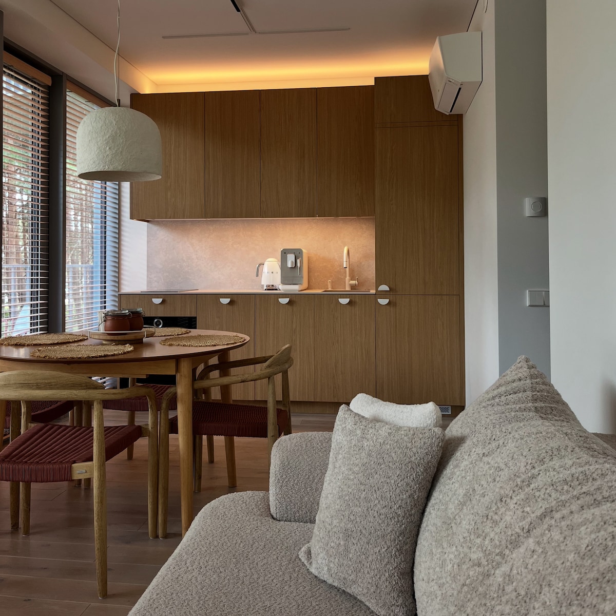 Réveillez-vous au son des vagues et endormez-vous à la brise marine : bienvenue dans la maison la plus proche de la plage de Palanga. Ce studio spacieux et lumineux offre une combinaison rare : un accès direct aux dunes, un balcon privé et tout le confort pour une escapade relaxante sur la côte. À seulement 2 minutes à pied le long d'un chemin en bois vous emmène au-dessus des dunes et directement à la plage. Que vous sirotiez votre café du matin ou que vous profitiez d'un coucher de soleil tranquille, le balcon devient votre siège au rythme de la mer.