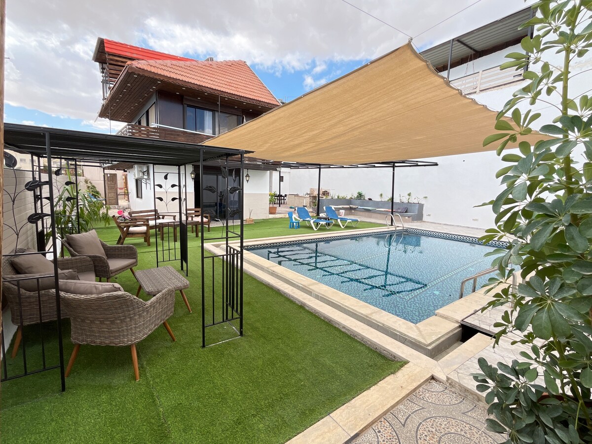 Amenez toute la famille dans cet endroit génial avec beaucoup d'espace pour s'amuser. Nous avons une cuisine extérieure, une grande piscine, une vue imprenable sur Jéricho et la climatisation. La Villa est très privée et parfaite pour les familles.