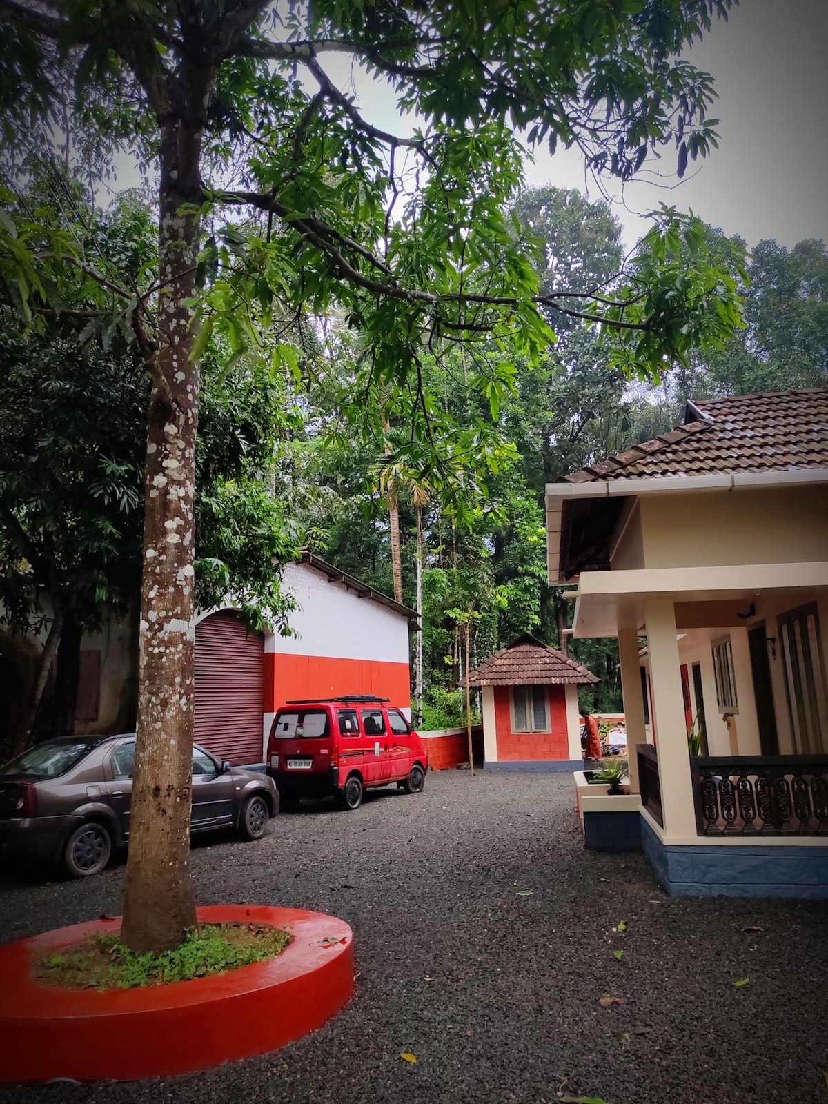 Entouré de verdure luxuriante et de flore vibrante, il dispose d'espaces confortables conçus pour se détendre. Profitez du son doux des vagues ou du chant des oiseaux, avec de grandes fenêtres pour apporter de la lumière naturelle et des brises tropicales. Cette maison est écologique et entièrement alimentée par l'énergie solaire. À 14 km de Kotayam, 14 km de Pala, 6 km de l'église Manarcad, Ettumanoor, 6 km. Il est situé dans un endroit calme et calme. Est à Ayrkunnam. Nous proposons même des salles de bains de style américain !