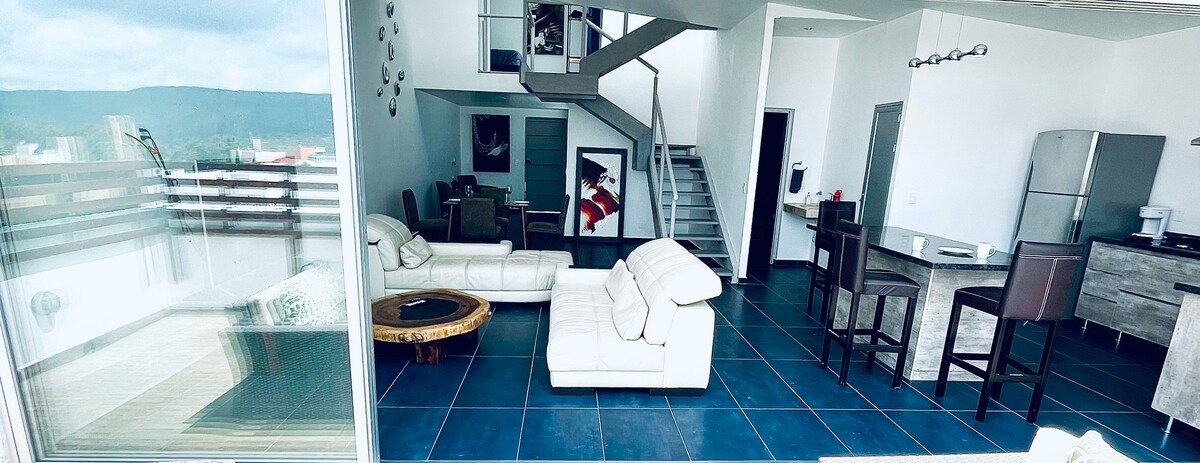 -Un Penthouse con una vista y ubicación privilegiada. Cerca del centro Histórico de Guadalajara y de fácil acceso con estacionamiento privado. -Cuenta con Terraza y Jacuzzi privado al aire libre. -Además contamos con alberca de uso común en el mismo nivel. -Ubicado en el nivel 9 a un costado del elevador en una torre de apartamentos exclusivos, con cómodas instalaciones y acogedores ambientes diseñados para que vivas una experiencia increíble! Será un gusto poder recibirte con nosotros.
