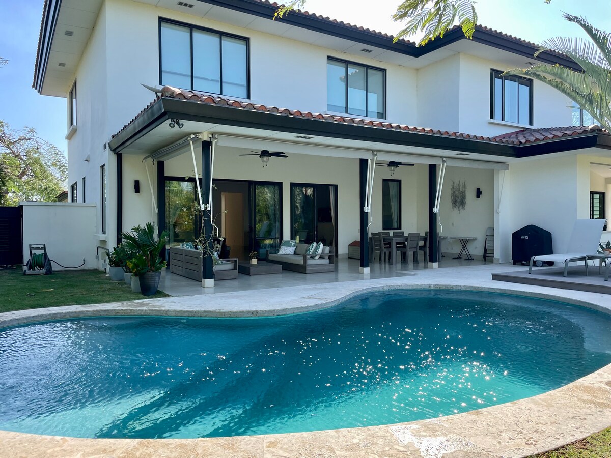 Détendez-vous dans cette élégante villa de 4 chambres avec salles de bain privées, face au 7eme green du golf de Mantarraya. De plain-pied, elle offre 250 m² de confort, et capacité pour 12 personnes. 🌴 **Points forts** - Piscine privée de 15 m avec zone peu profonde - À 15 min à pied de la plage du Pacifique - Accès au Beach Club (restaurant + parking) - Cadre paisible en bordure de golf Parfaite pour les familles, groupes ou passionnés de golf en quête de soleil et tranquillité.
