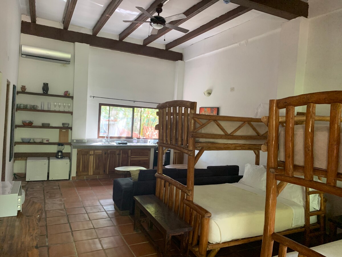 ✔ Private top suite with independent entrance + balcony and access to the main pool ✔ Rustic, local but very safe area — not luxury / not beachfront ✔ Bedroom, living room, kitchen & private bathroom ✔ WiFi, A/C and fan ✔ Discounts for long stays ⚠️ On a small hill, 10-min walk to the beach — not ideal for older guests or mobility issues ✨ Small plunge pool + BBQ area available for $35 for 3 hours (with confirmation)