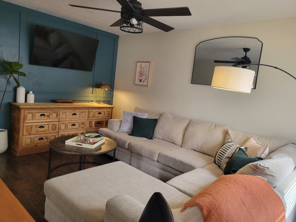 Ma maison est parfaitement située entre les quartiers historiques de Benson et Dundee. Ce charmant espace comprend une chambre principale spacieuse avec un lit Queen Size, un placard et une commode, une chambre d'amis avec un lit Queen Size, un salon confortable, une cuisine rénovée et un petit coin repas, ainsi qu'un grand salon au sous-sol avec un canapé convertible, un autre lit Queen Size et beaucoup de place pour un matelas gonflable supplémentaire. Profitez d'une expérience élégante dans cette maison située au centre, à moins de 10 minutes du centre-ville d'Omaha.