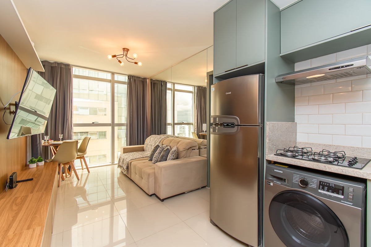 Profitez de journées paisibles au bord du lac au cœur de Brasilia ! Notre appartement en résidence dans le Lake Side est très confortable, parfait pour ceux qui recherchent le confort sans renoncer à un emplacement privilégié. L'espace dispose de deux lits confortables, de la climatisation, d'une télévision, d'une petite cuisine et la copropriété offre une structure de complexe hôtelier complète : piscines (chauffées), salle de sport, marché, pharmacie, restaurants, salon de beauté, salon de coiffure et plus encore.