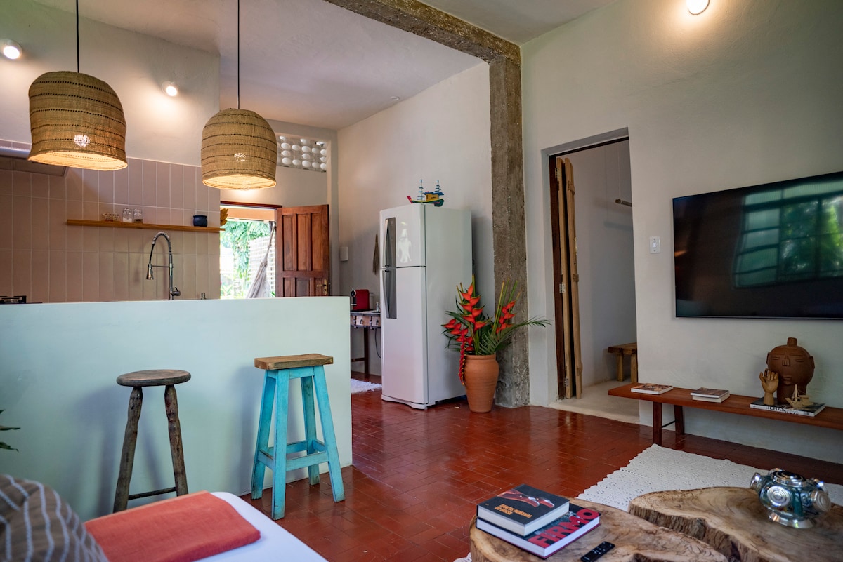 Casa pensada para casais que desejam viver Paraty com calma, charme e conexão. Um refúgio acolhedor, com cama queen confortável, ambientes integrados, rede para descanso e um jardim de inverno que traz luz e tranquilidade ao dia a dia. A cozinha equipada convida a refeições sem pressa, e a localização central permite explorar tudo a pé, sentindo o ritmo da cidade como um morador local. Um espaço para desacelerar, relaxar e aproveitar Paraty de forma genuína.