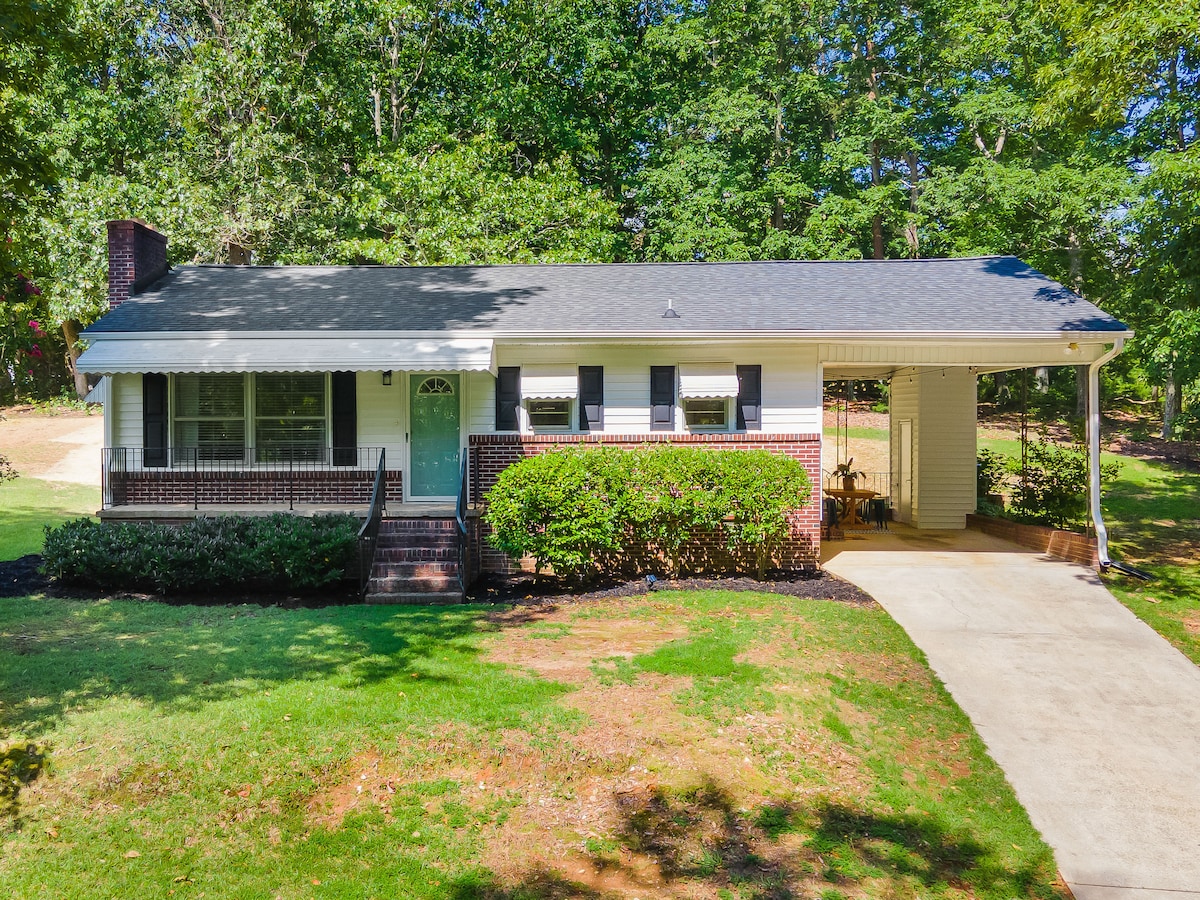 Décorée dans un thème moderne du milieu du siècle, cette maison est parfaite pour les couples et les voyageurs d'affaires à la recherche d'une esthétique paisible et moderne remplie de lumière naturelle. Cette maison est située à San Souci, à seulement 2,5 mi (8 min en voiture) du centre-ville de Greenville. Elle est également idéalement située à 1/2 mi du sentier Swamp Rabbit et de l'épicerie Swamp Rabbit. Veuillez consulter la section « Où vous séjournerez » pour une description plus détaillée de l'emplacement et du quartier. Nous sommes ravis de vous compter parmi nous !